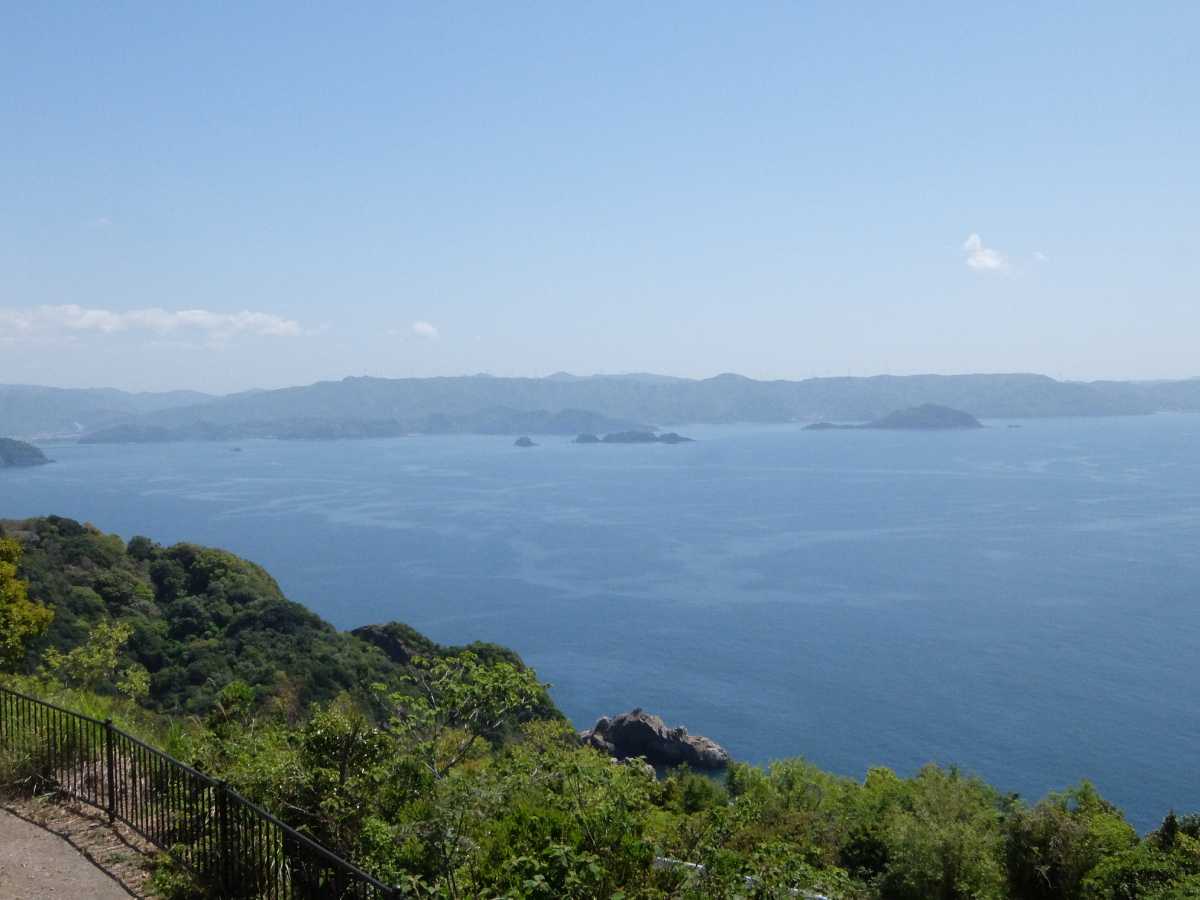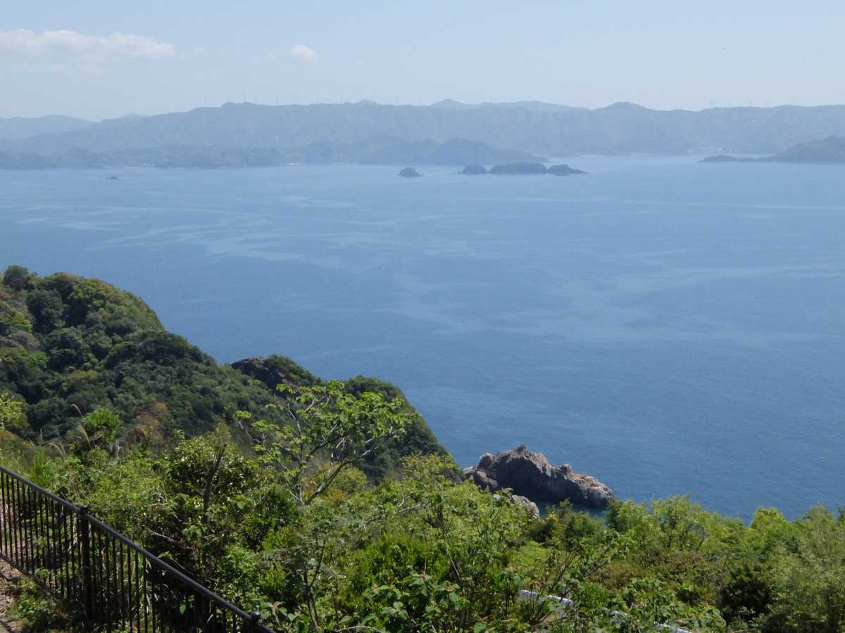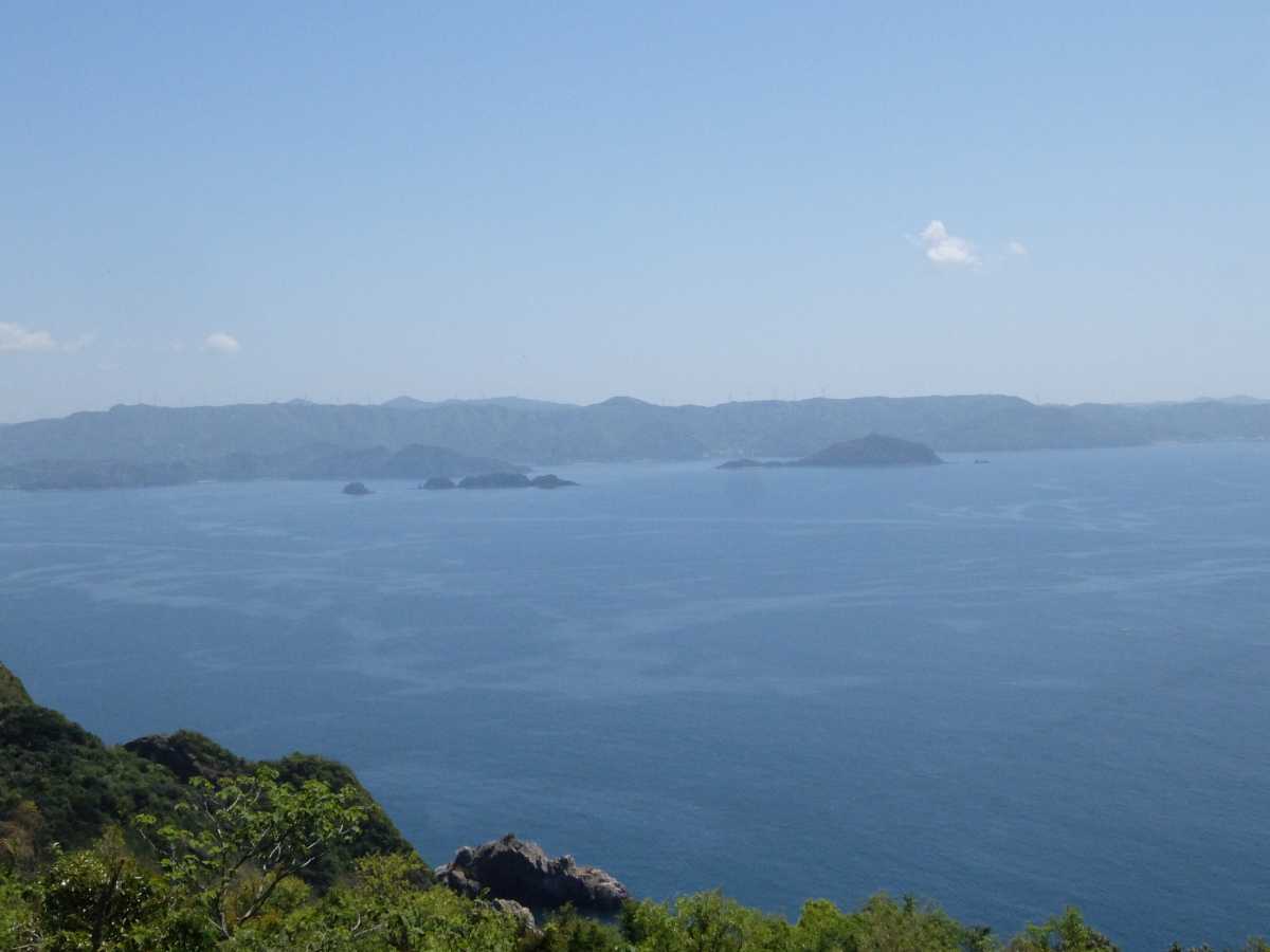 衛星写真にして貰うと分かりやすいですけども、海岸沿いの山の尾根を走ってまして、ミカン畑の木々が抜けると結構いい景色です。