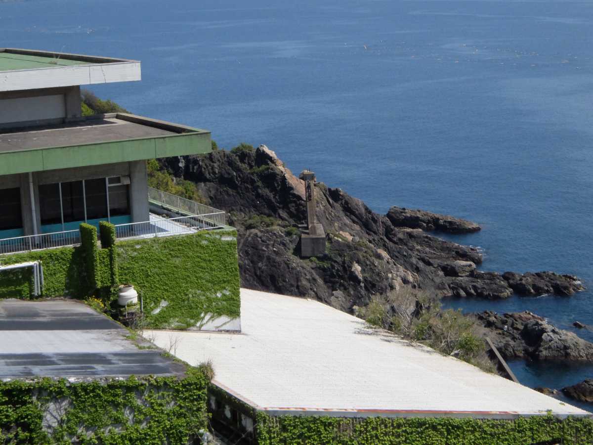 廃墟と化した宿の向こうの岩礁に、嘗ての「宇宙アポロ風呂」の痕跡もありました(;’∀’)。