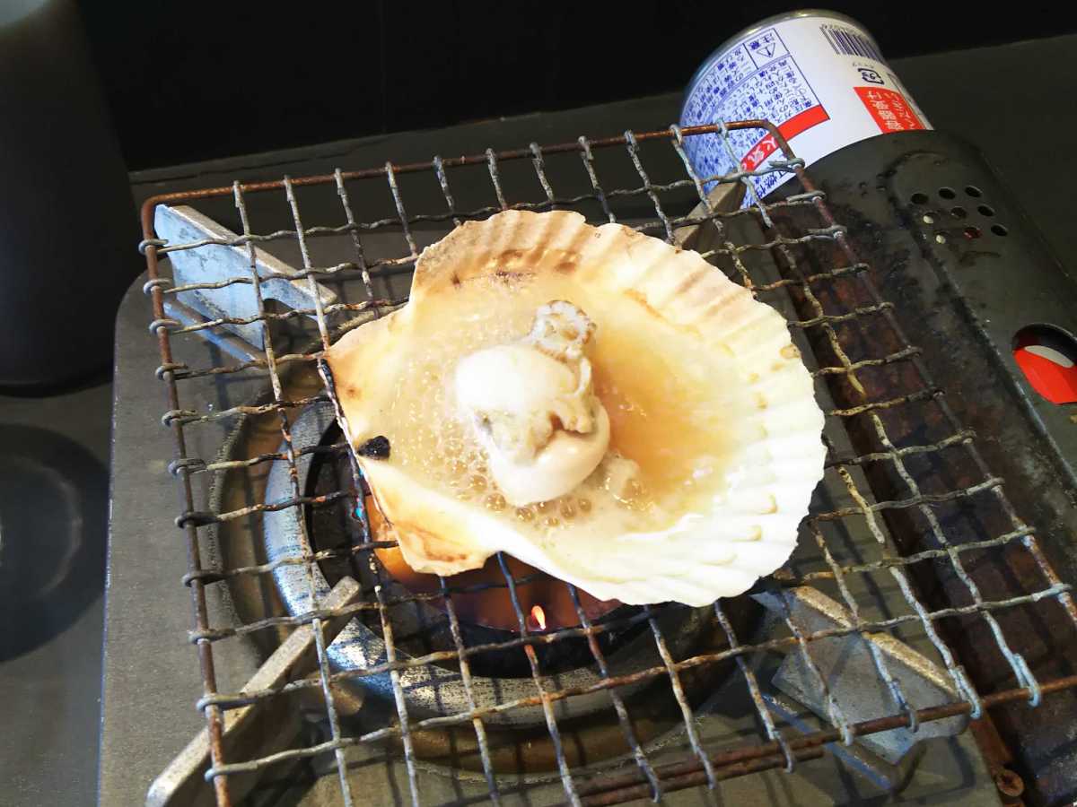 其の1 ホタテ(1400円以上なら無料で)。旨し、出汁も最高。
