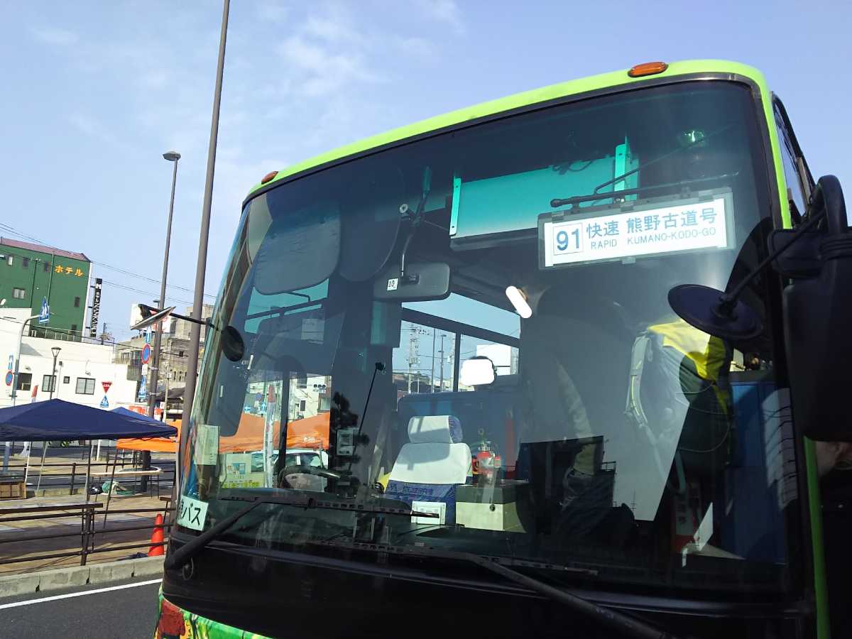 「快速 熊野古道」。明光バスが白浜空港~紀伊田辺経由で運行する、熊野本宮アクセスバスです。外国人乗車率が異常に高く、世界遺産の面目躍如と言った所でしょうか。