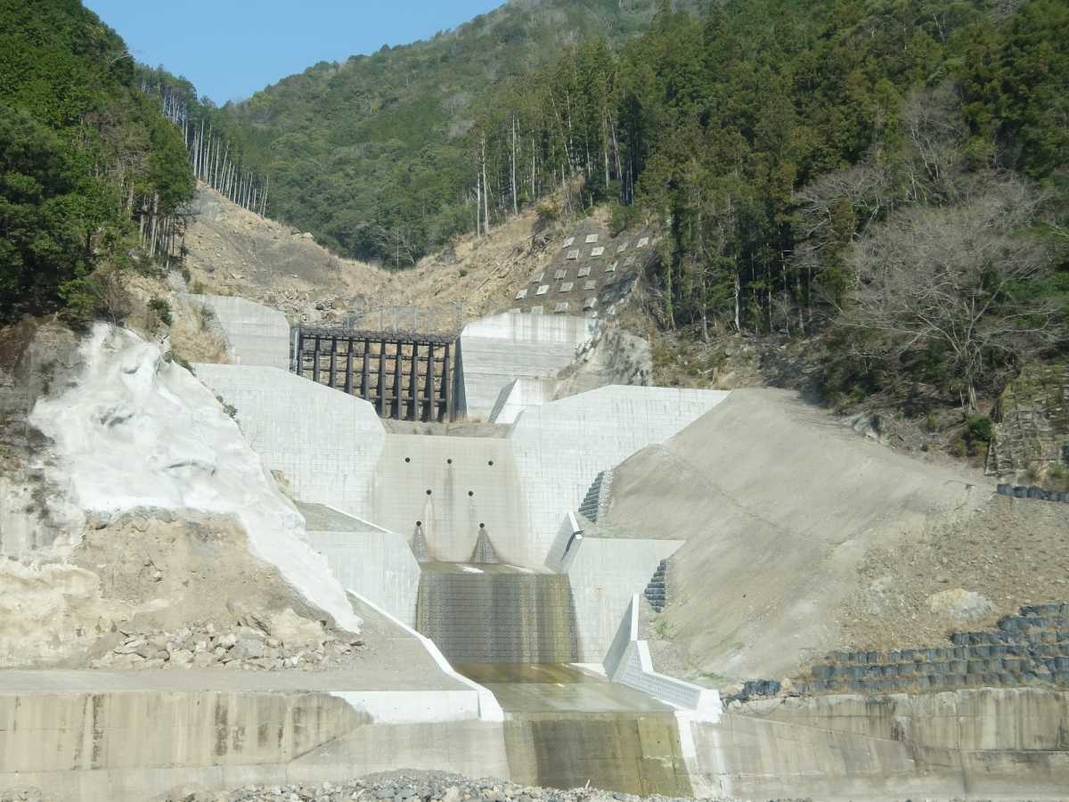 そうそう。ここ、元々は砂防ダム側に道が走っていたのですが、11年の大水害で山体崩壊を越して修復不能に。此処だけ不自然に道が迂回しています(正式に橋が架かるまではクランクだった)