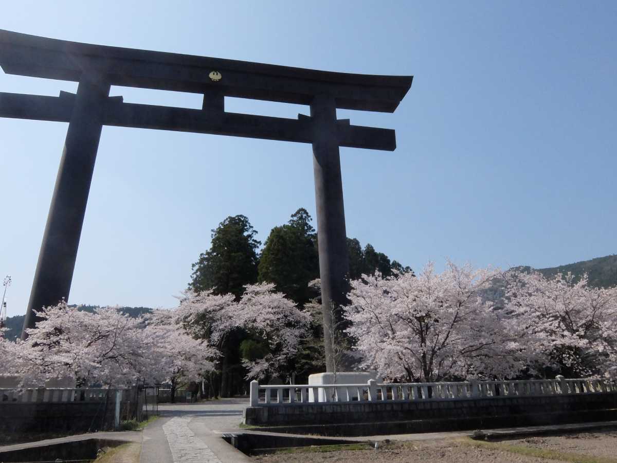 道を渡った目の前には熊野大社があります。2月最終週の土曜に行ったばっかりなので、今回はパス。其れよりも、到着直前に桜が咲き誇っているのがチラッと目に入った、ここ。
