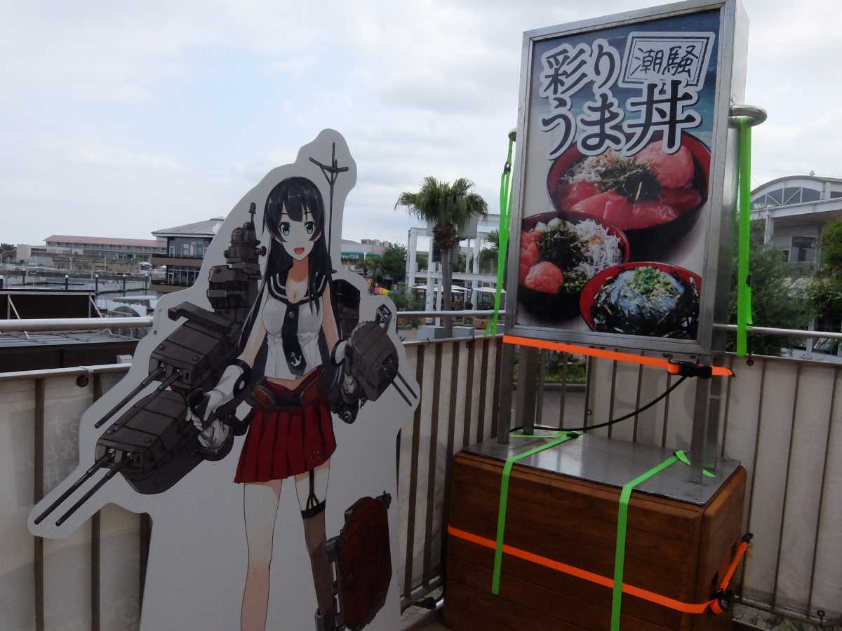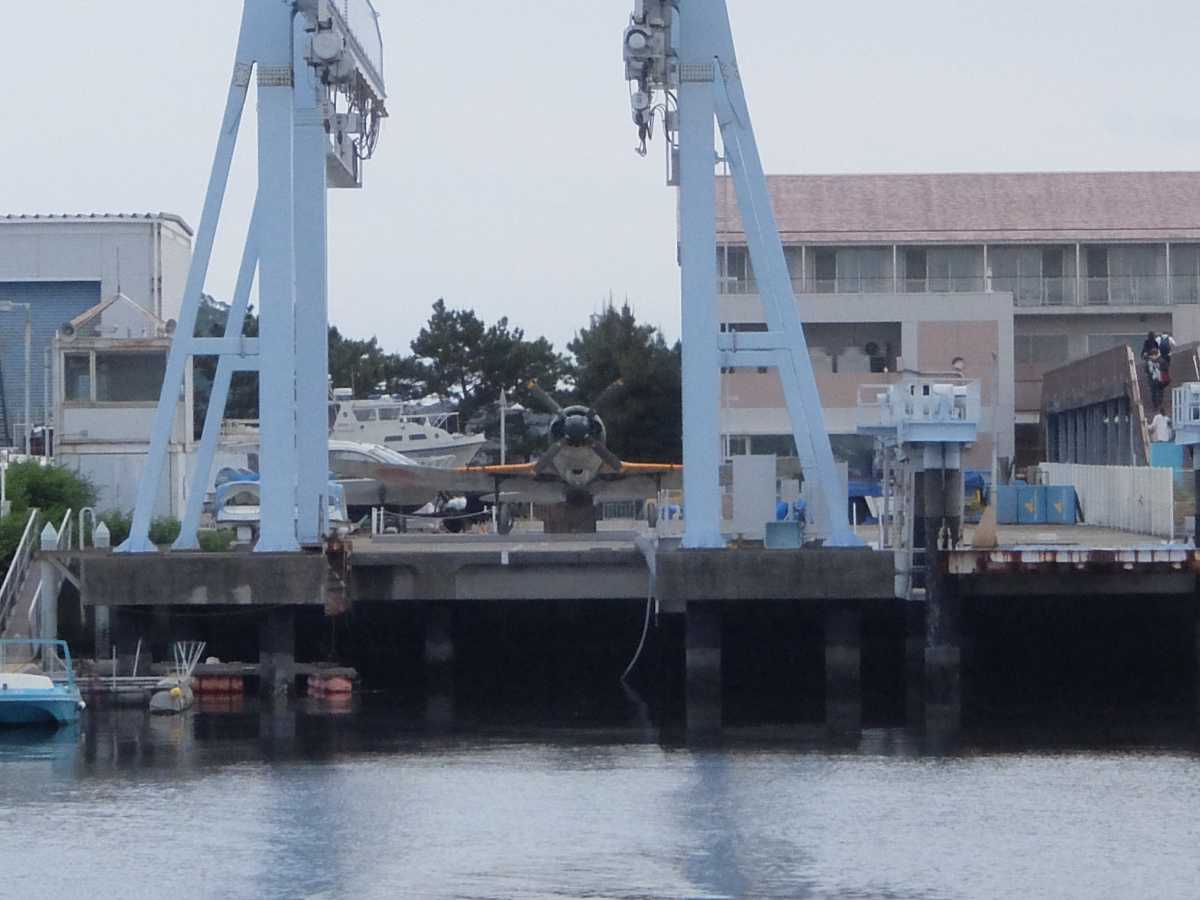 どうしても「入館料が払いたくない」って場合は丁度、鈴谷が浴衣来て茂みで誘ってる辺りから見ると対岸にいますので、光学望遠20倍位あれば何とか正面から撮れると思いますよ(あと「海ファーム入り口」付近からもエンジンカウルの辺りが見えます)。