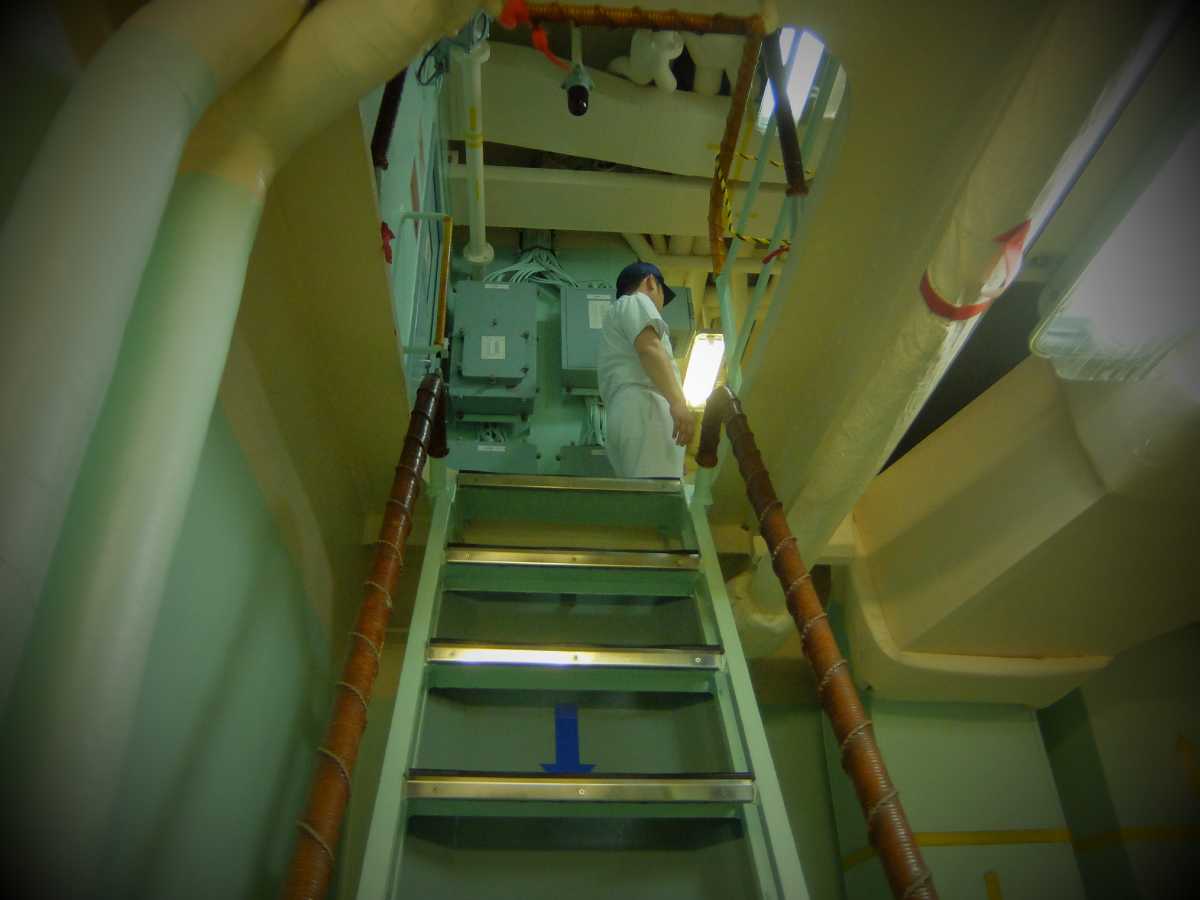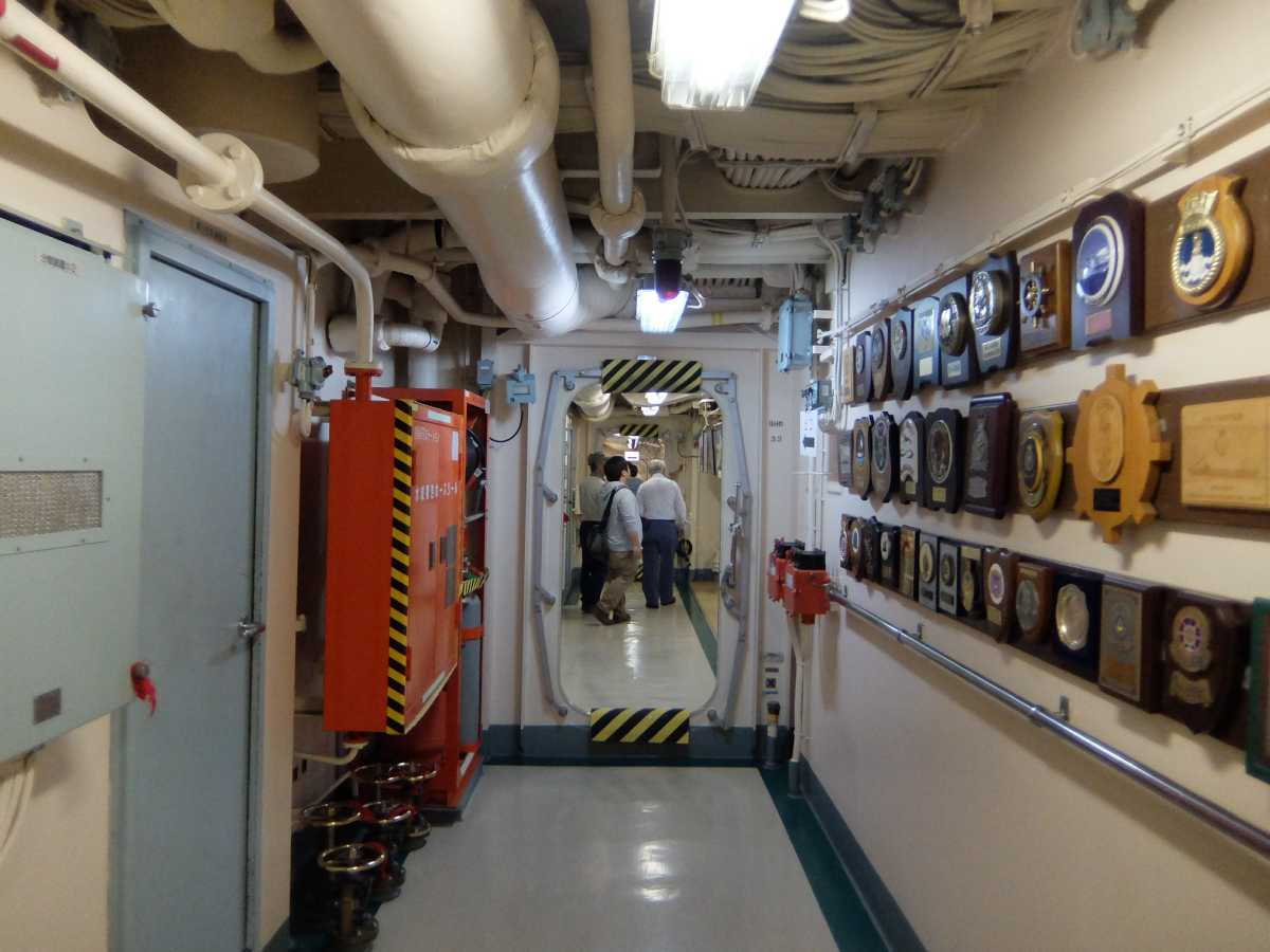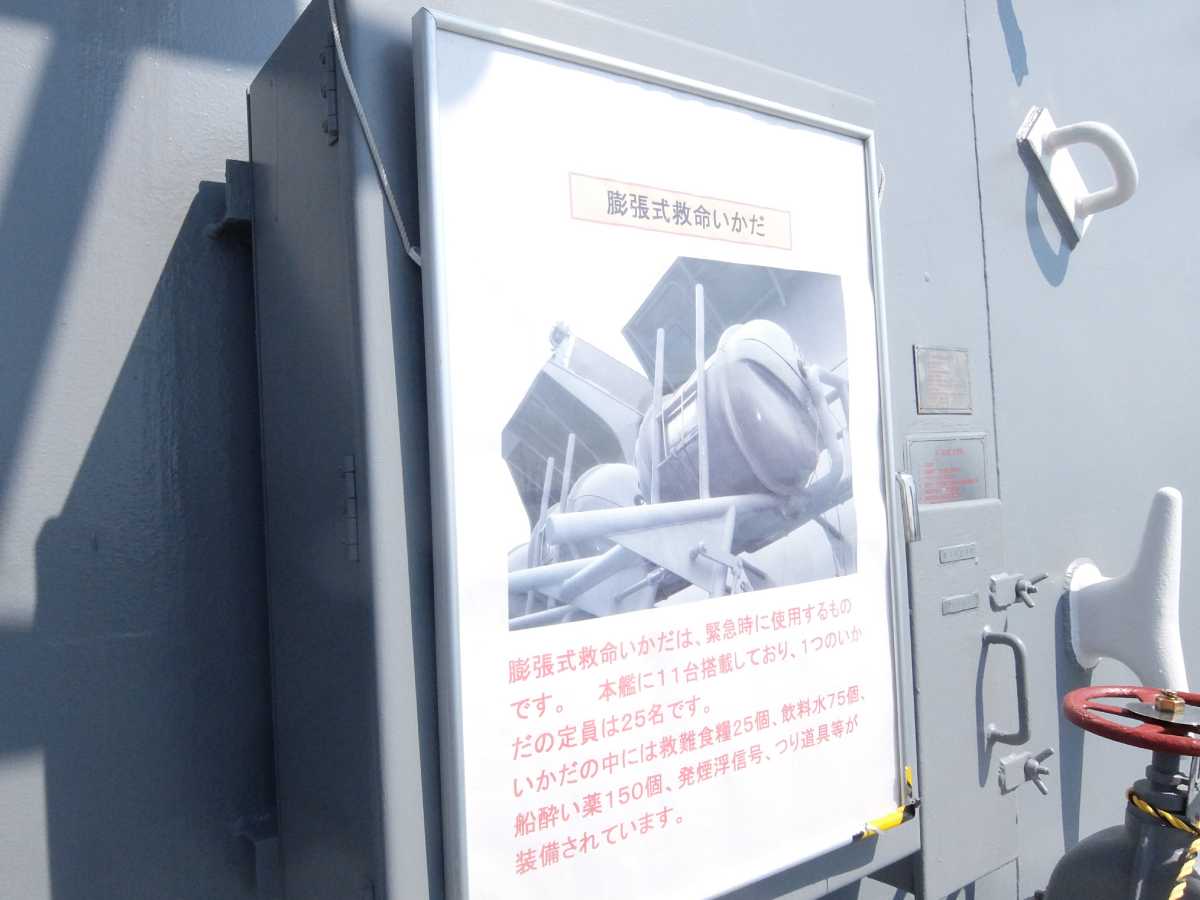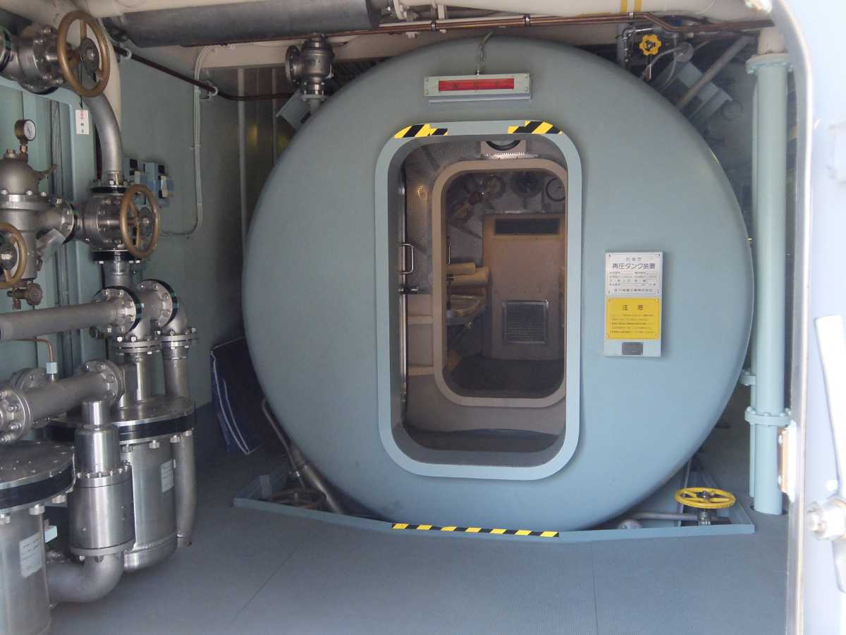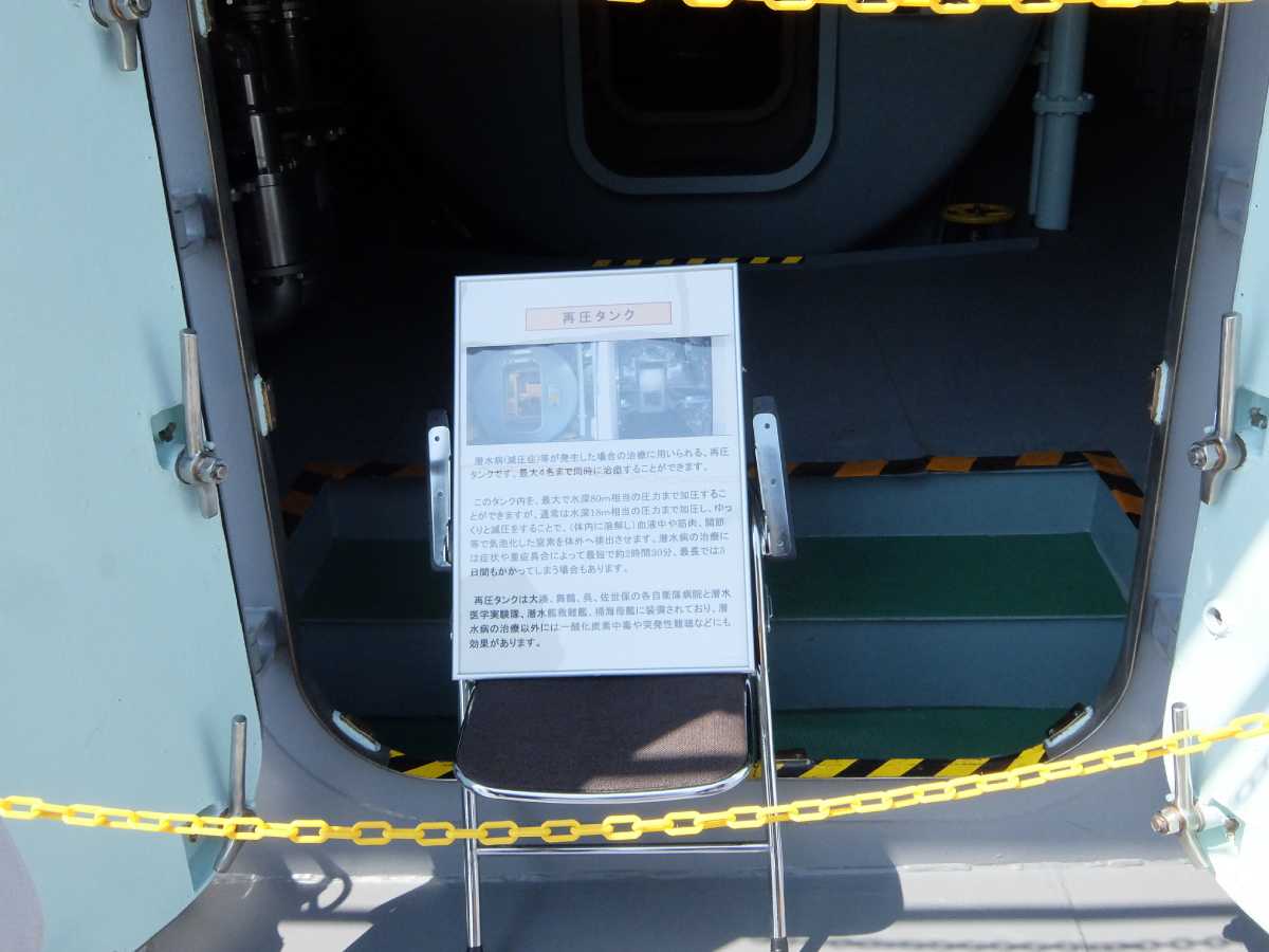 更に進んで艦橋裏側、潜水病治療の為の与圧室が。海に潜って機雷除去する事もあるし、やっぱ必要な設備なんだろうなぁ…(掃海作業の詳細は呉の「てつのくじら館」が詳しいです)