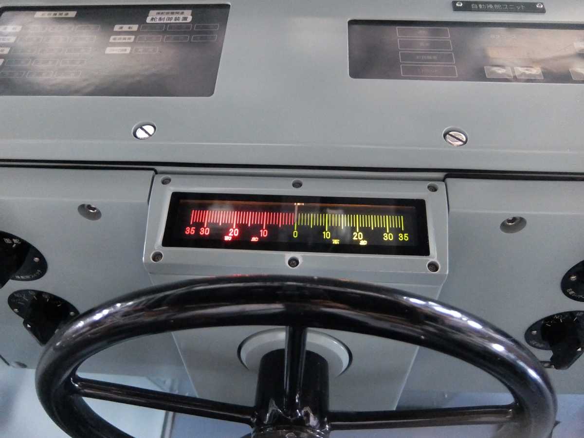 操舵ハンドルも握らせて頂きました。停船中だからなのか、めっちゃ軽かったです(汗