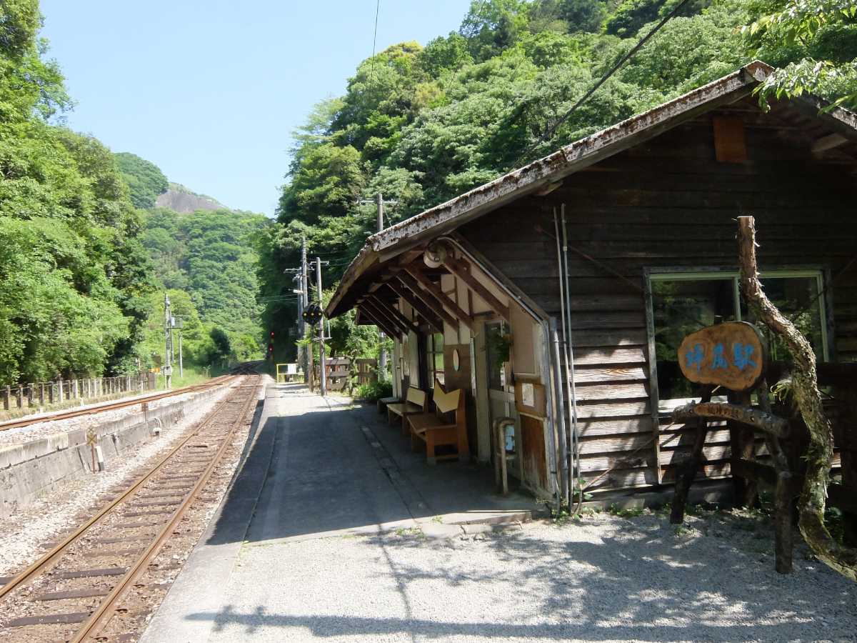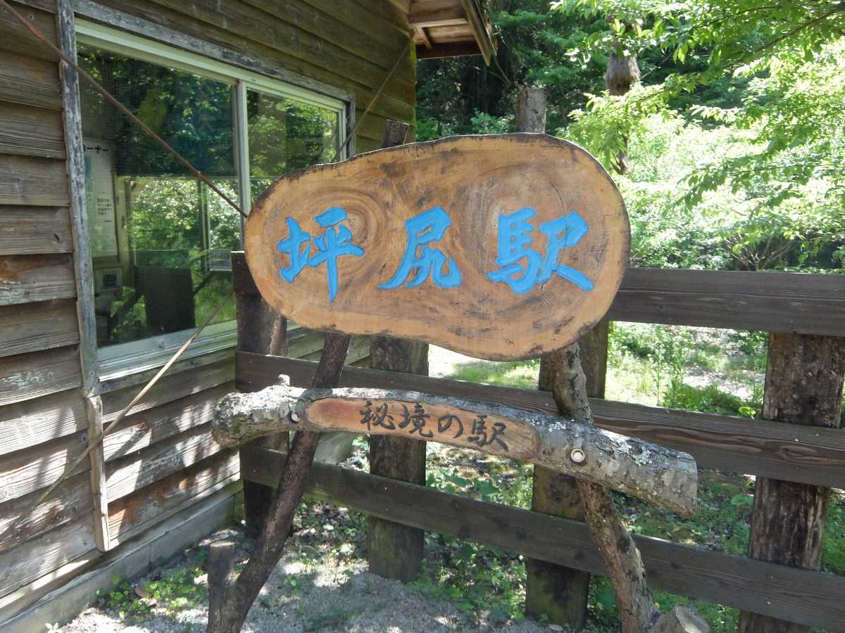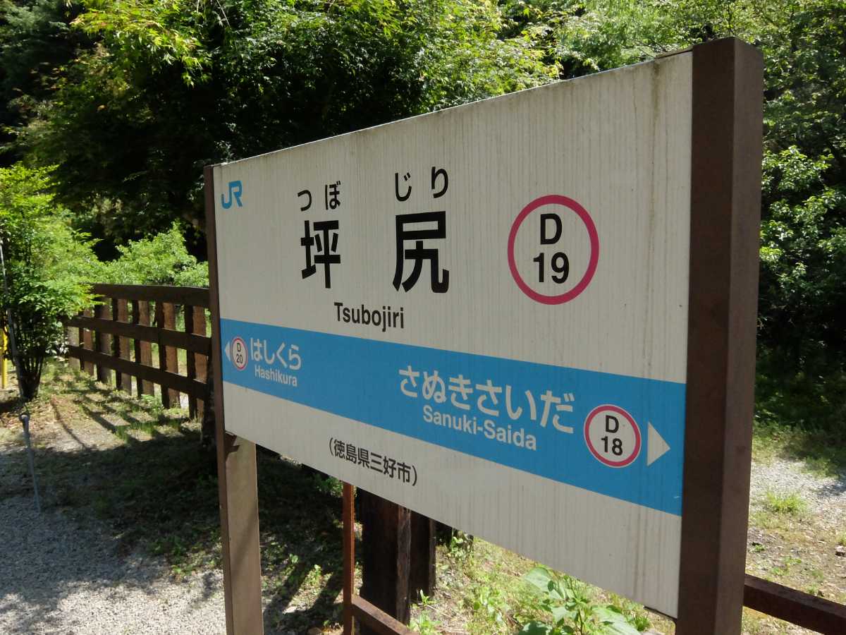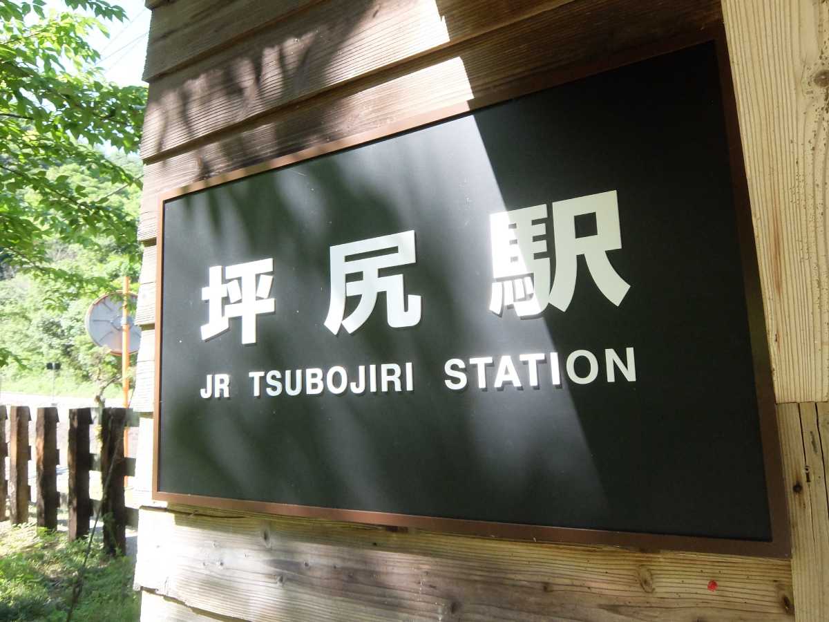 やって来ました、スイッチバックのある【秘境駅】坪尻! まぁ、これだけ有名になってしまっては秘境も何もないんですが(実際ど平日昼間なのに他に二人ほど同目的な人がいた)