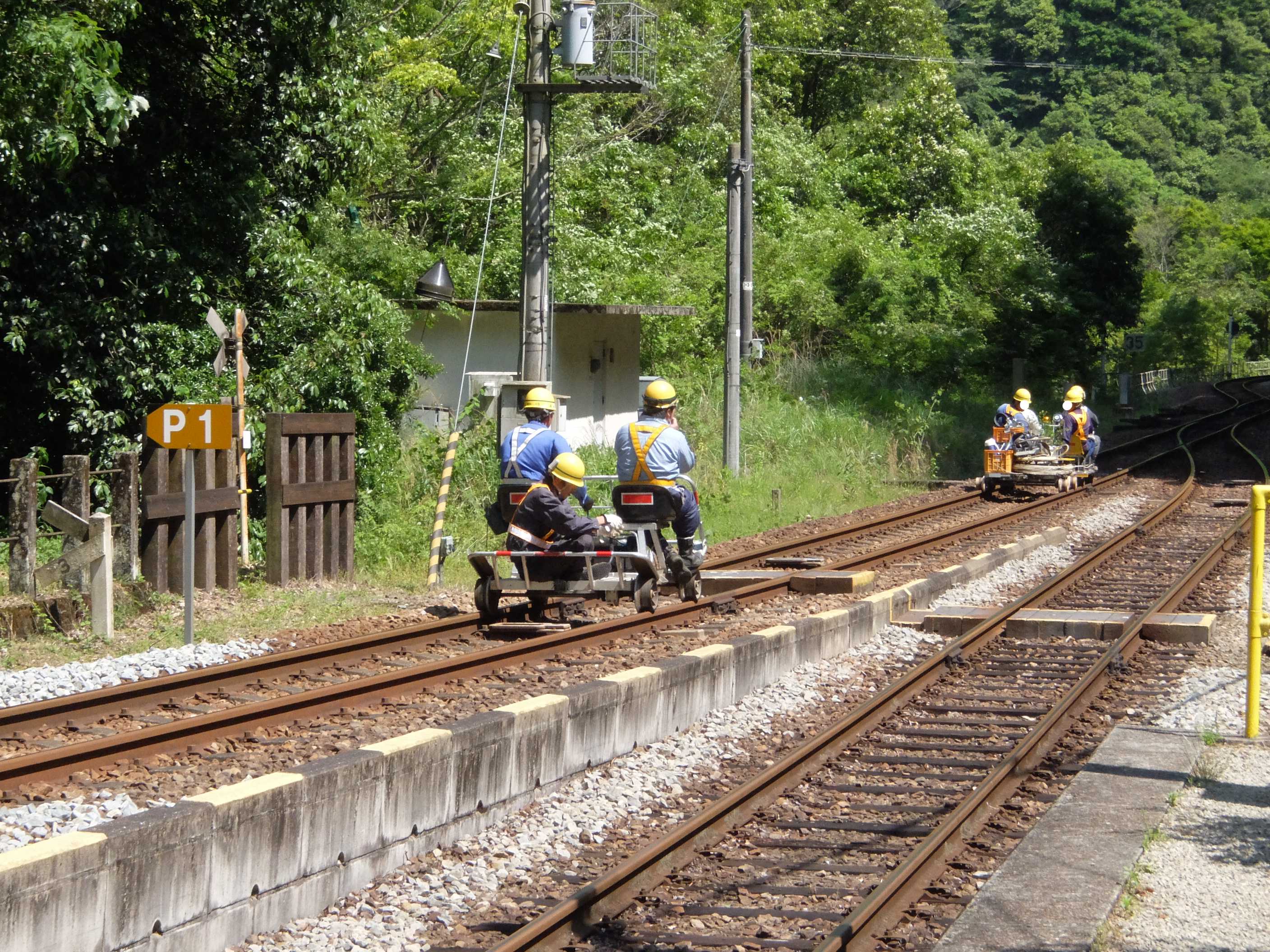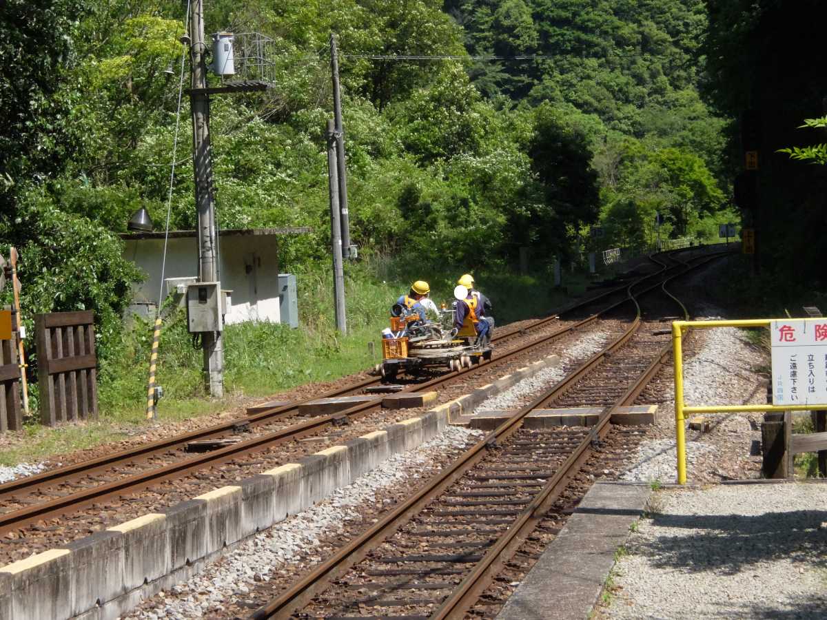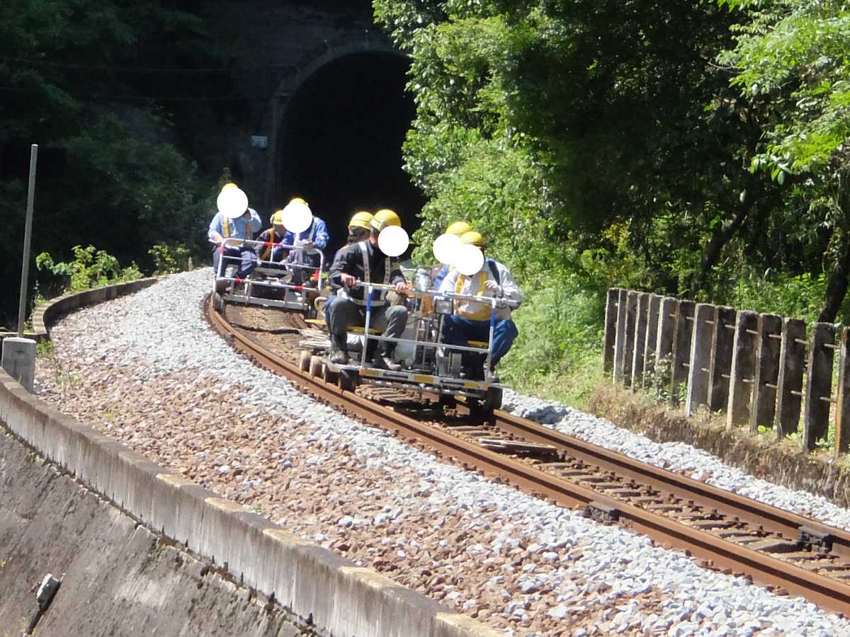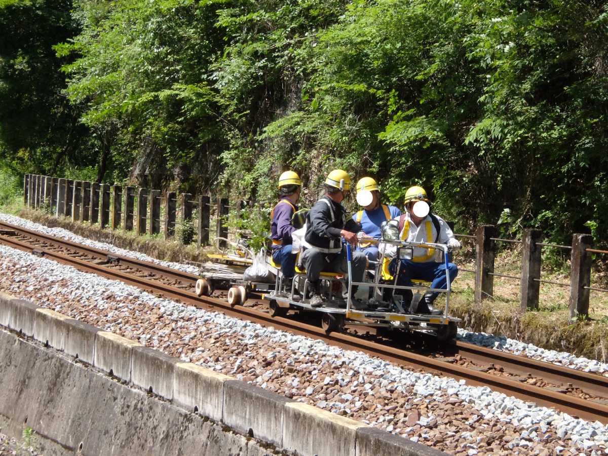 保線用のモーターカーが。なんか心なしか楽しそう(;・∀・)