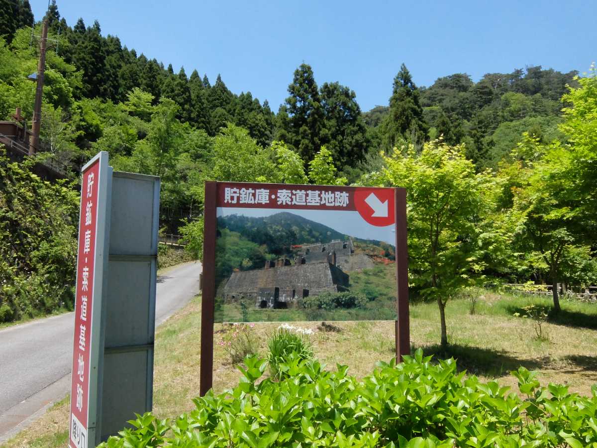 その後はガイド一行に合流して選鉱場跡の真上に。此処から向かいの山肌に