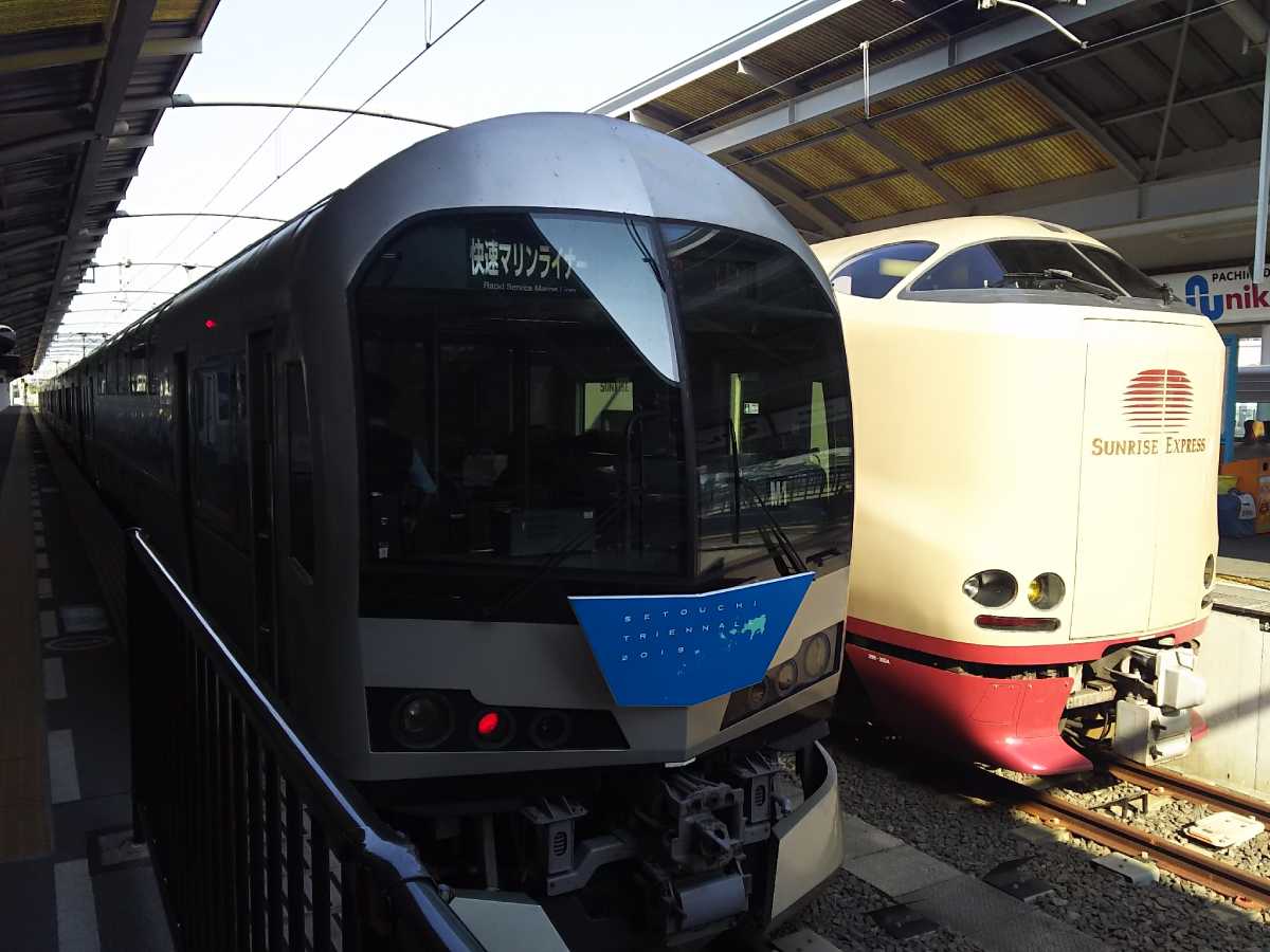 時間帯が昨日の出発とよく似た時間帯だったので、この日も駅にはサンライズが。この日は一旦マリンライナーで坂出にでて「がもう」最寄り駅の鴨川へ。乗り放題ならではの乗り方ですよ。