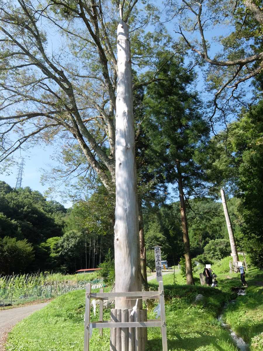 反対側にも御柱(手前が一之柱、奥に小さく見えるのが四之柱)