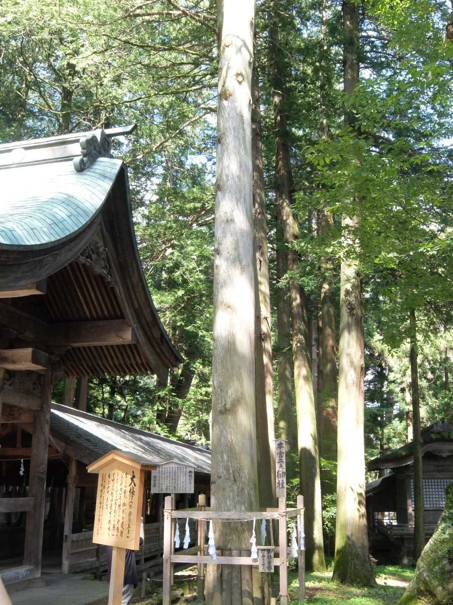 諏訪大社はそれぞれの神社にこうして四本の御柱が鎮座しているんですね。この御柱を使ってやっているのが、奇祭として名高い「御柱祭」になります。