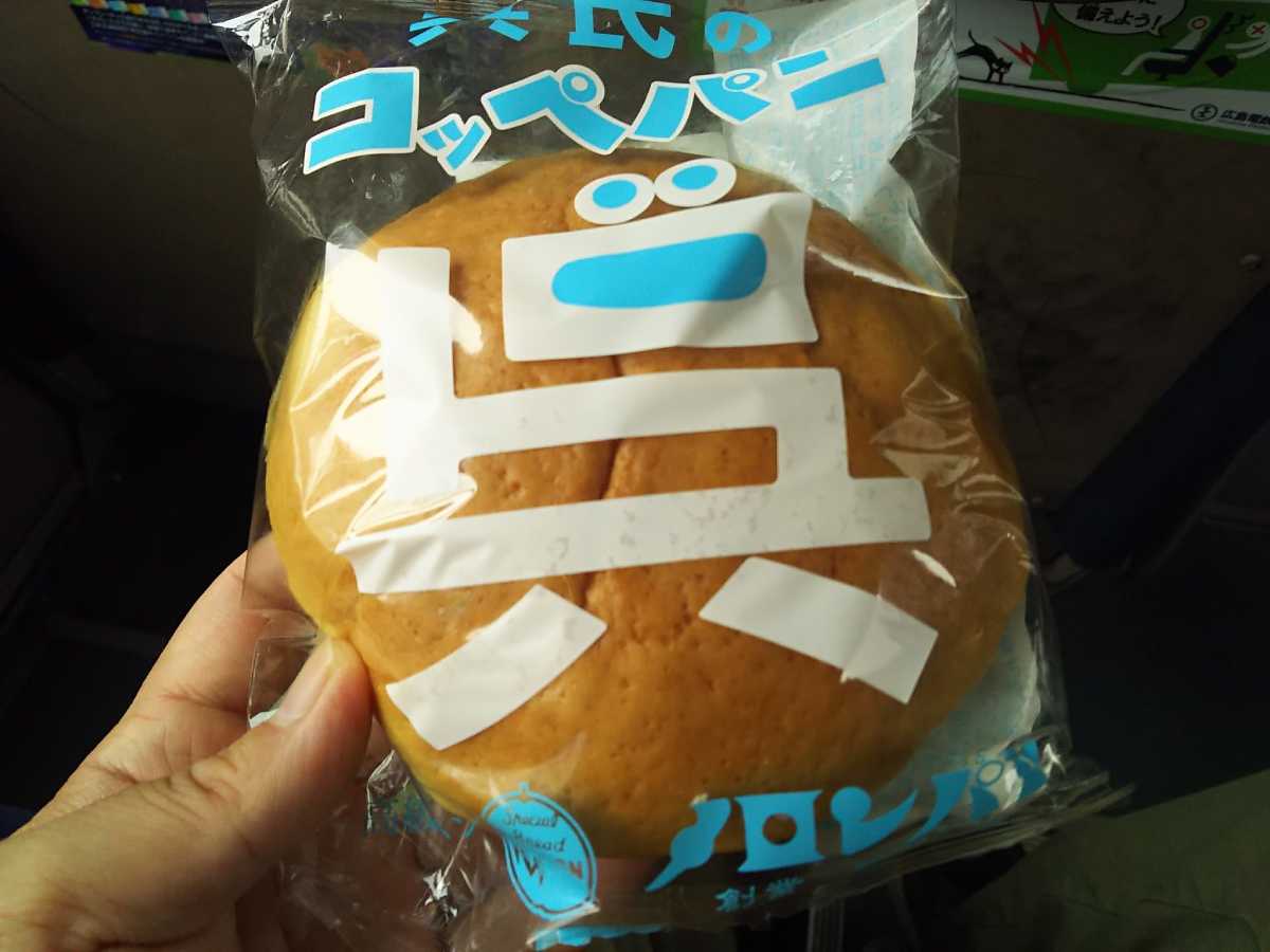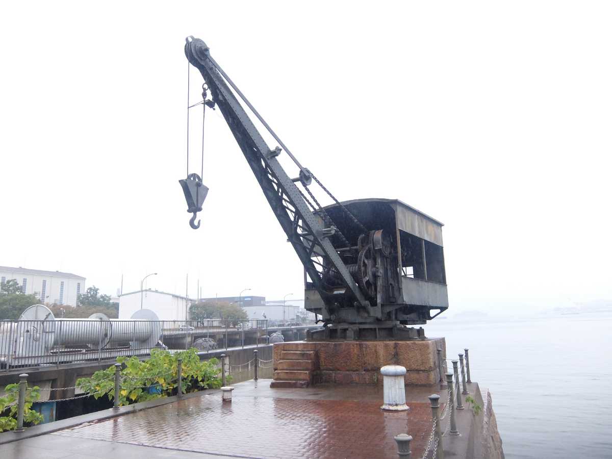 途中「メロンパン」で買った「呉市コッペパン」を貪りつつ鍋桟橋へ。強くなる雨の中、辿り着いたのが。