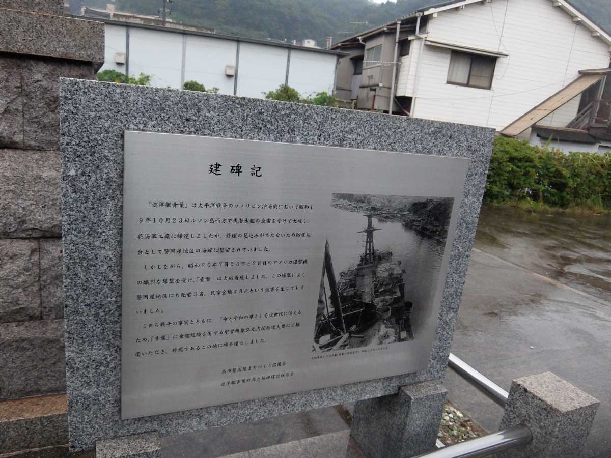 ここ、重巡洋艦青葉終焉之地。「ソロモンの狼」「浮沈艦」と言われ3度の大破を乗り気った青葉が最後に着底した地。一応二次創作で艦これの青葉とすずさんの漫画を描いている身とすれば、絶対に訪れておかねばなら無い所でしょう。