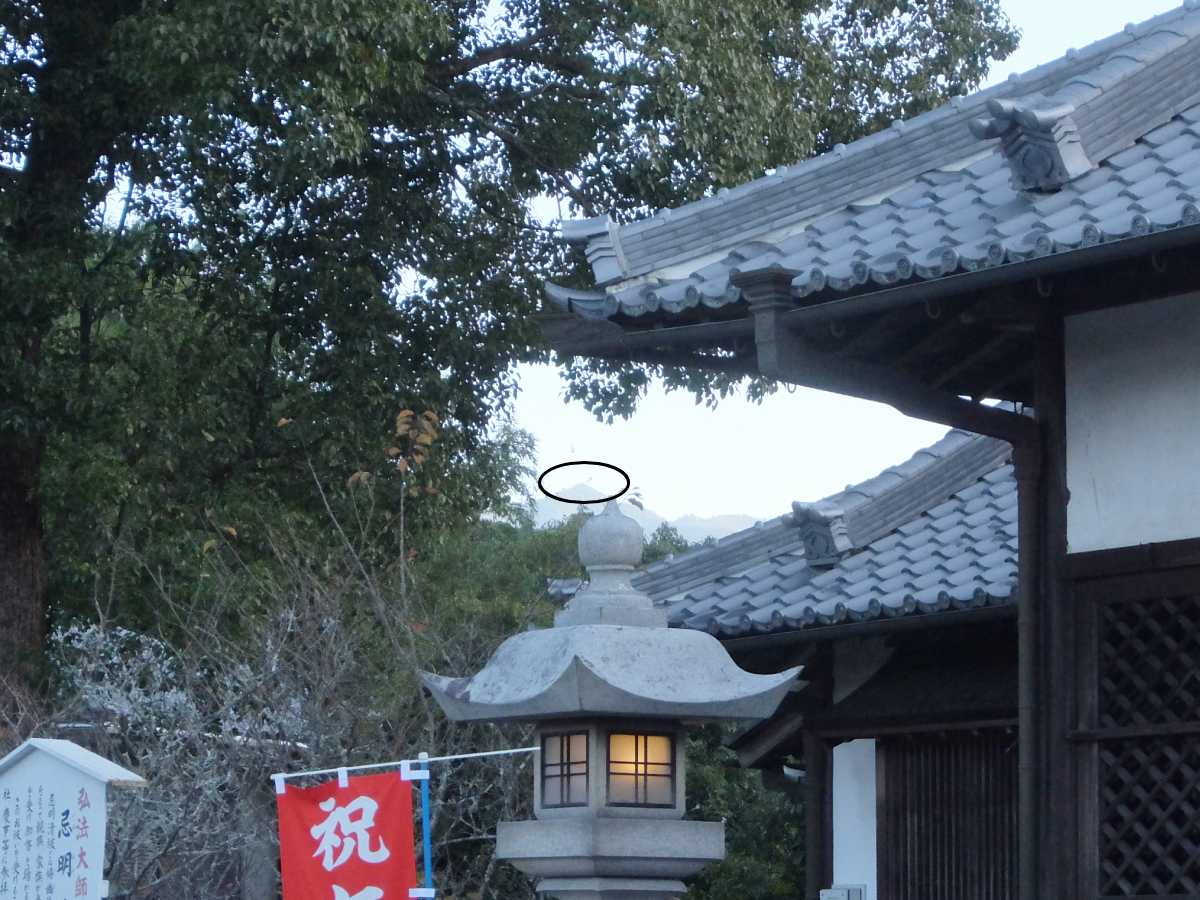 拝殿脇を見ると奥に見えるこの山…が高野山になるとの事。