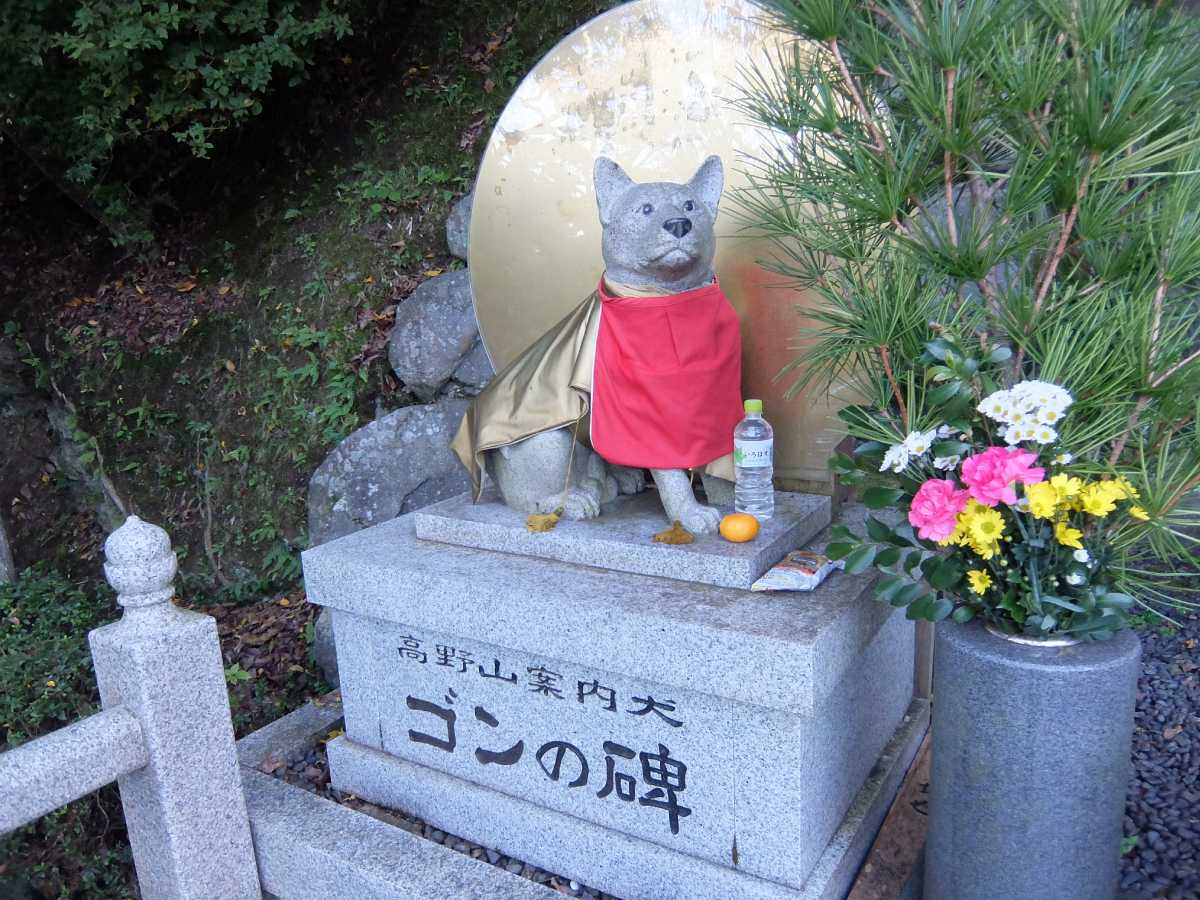 その隣には、昭和から平成初期にかけて高野山の参詣者・ハイキング客を案内した犬と言われる「ゴン(2002年没)」の石像も鎮座してたりしています。