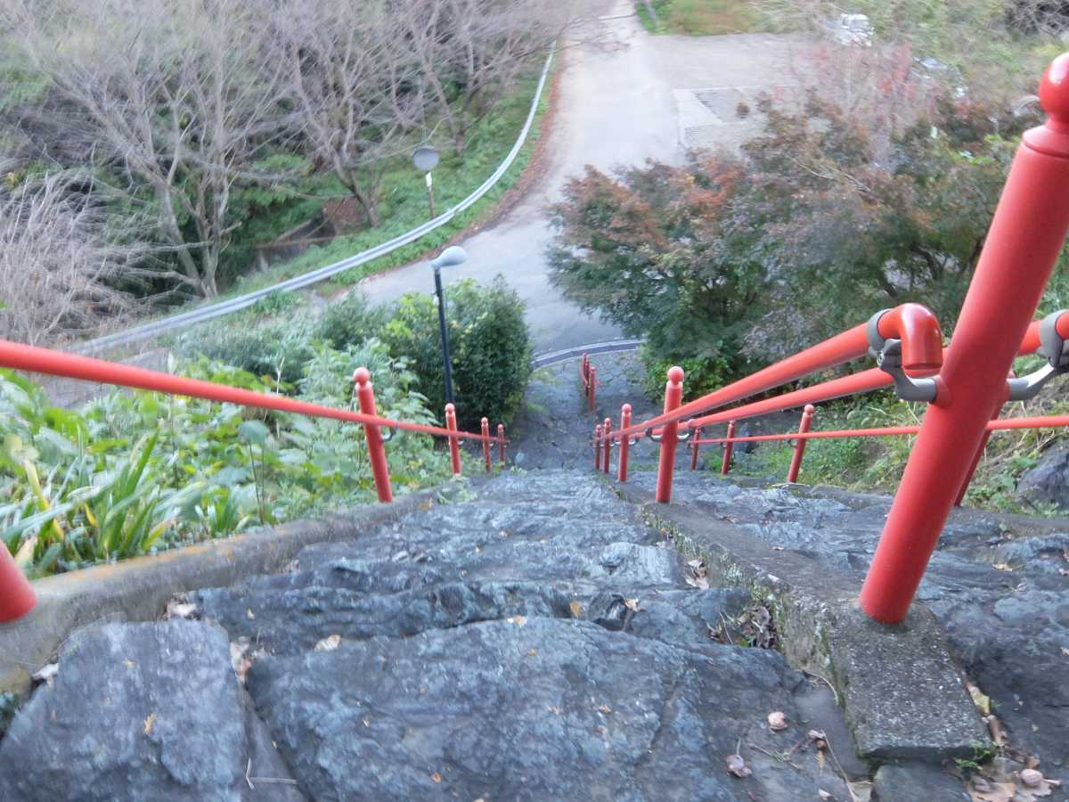 なに、この石段…梯子でしょコレ(ちゃんと緩やかな階段や女坂もあります)。