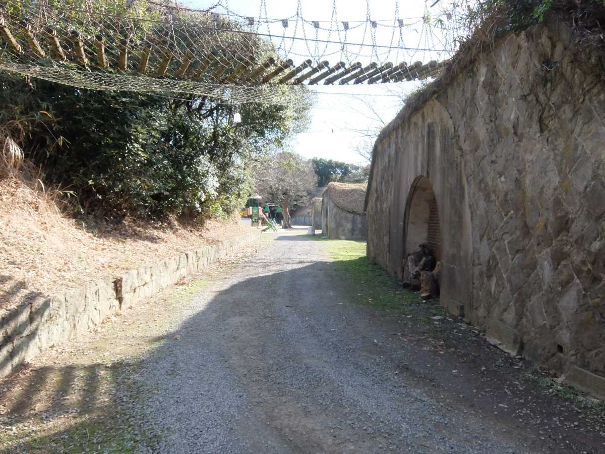 この「青少年国際交流センター」、狭い進入路の所に一方通行の札と「利用者以外の侵入を禁止」する旨の注意書きがありますが、砲台跡見学は「利用者」の範疇ですので、車で中まで入る事が可能です(ただし狭いので注意は必要)。
