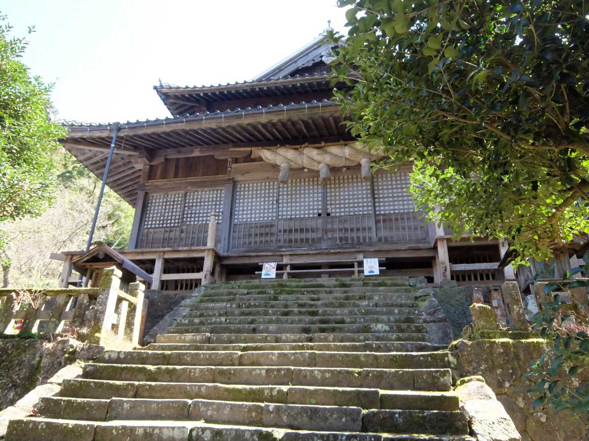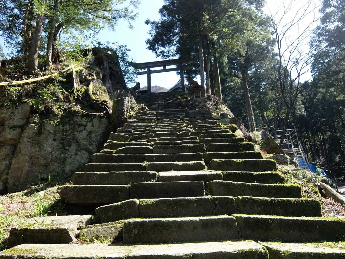植林された杉の影響で階段が歪んでしまったそうで、現在工事中なのですが、こんなシュチュエーションの神社、参拝せずには居れないと言う事で