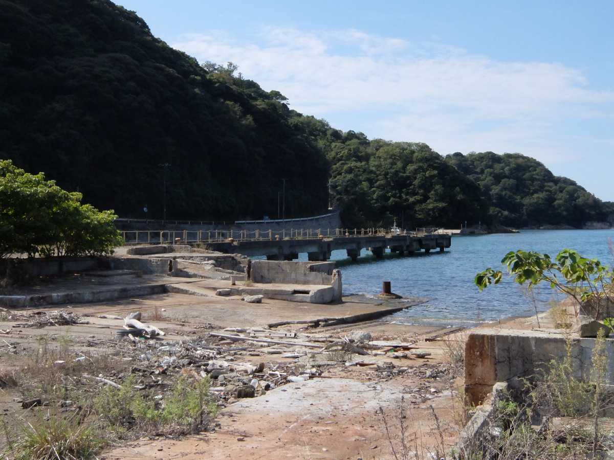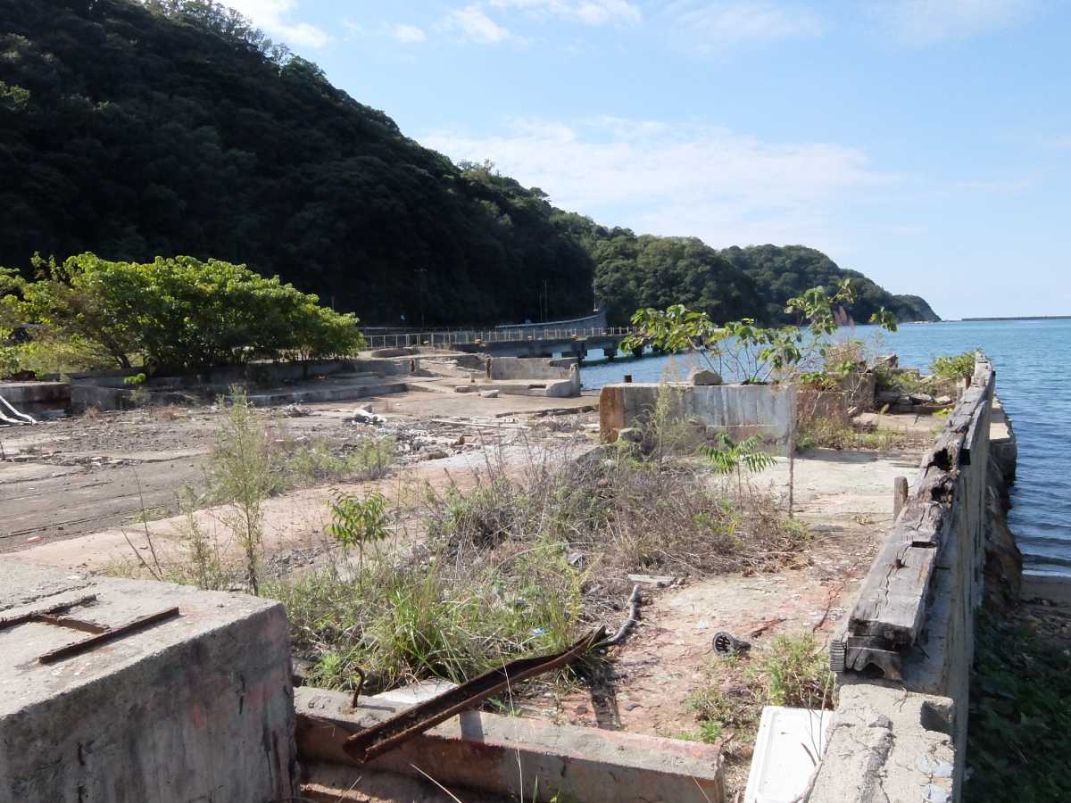 あ、これ小型船の造船所跡か(家の下にも有るので多分そう)。立ち入り禁止っぽいので此処で引き返し。