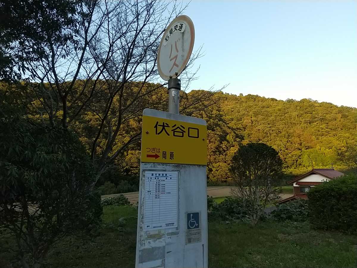 立て続けに3軒を梯子し、最寄りの花ヶ瀬バス停を16:14発(実際は1~2分遅れでしたが)の医光寺行きに乗り込み益田駅前下車、益田駅前を2番乗り場から出る16:30発の都茂線板井川行きのバスで伏谷口へ