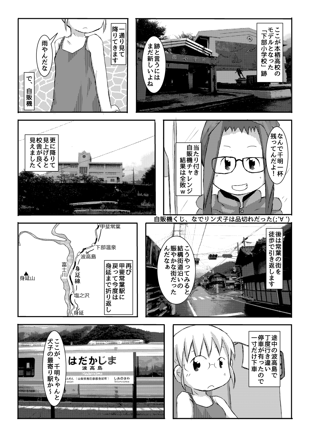 甲斐常葉駅で下車、本栖高校のモデルとなった下部中学校跡へ。