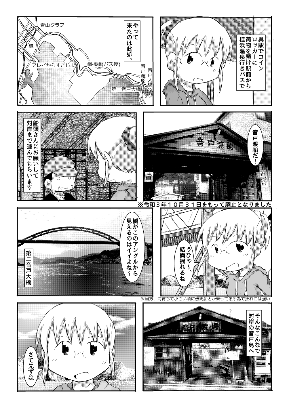 呉を巡るお話は「艦これ&この世界の片隅で二次創作」にて「すずさん・青葉・雪風の呉スタンプラリー巡り 2019」にて。BOOTHにて通信販売中です。