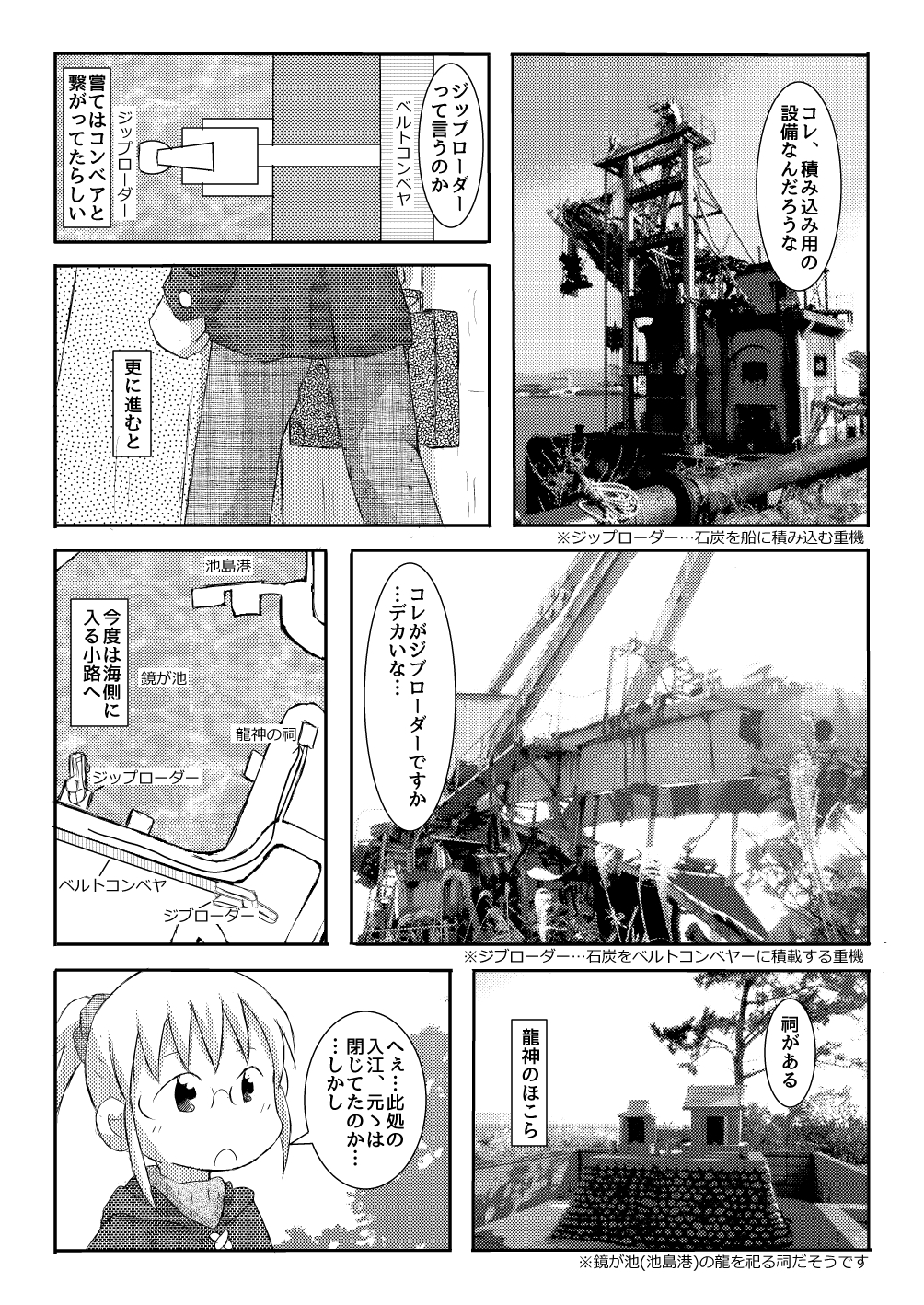 巨大なジップローダー(石炭積み込み用の重機)やジブローダー(石炭をコンベヤに乗せる重機)を見て周り、東側の海岸線を経て島をぐるっと一周。
