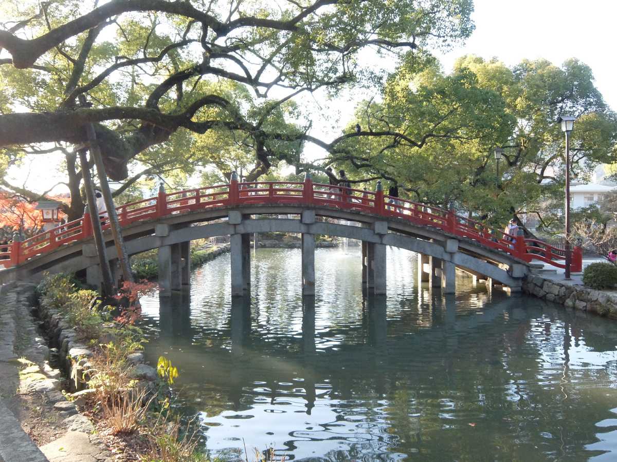 帰る頃には太鼓橋周辺の人でも減って来ていたので、此処でも紅葉をパシャり。