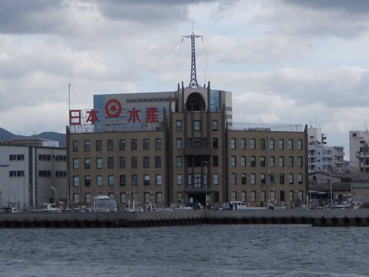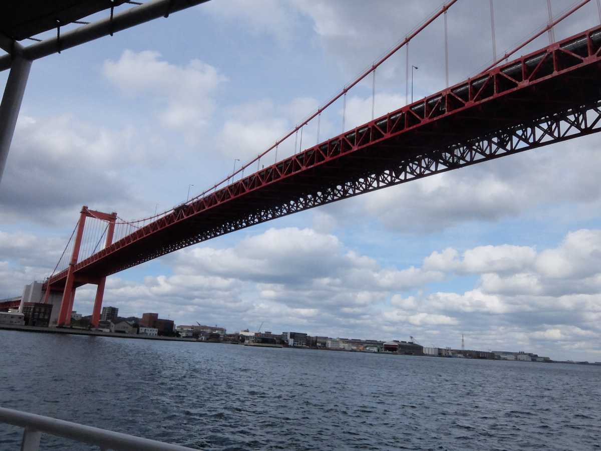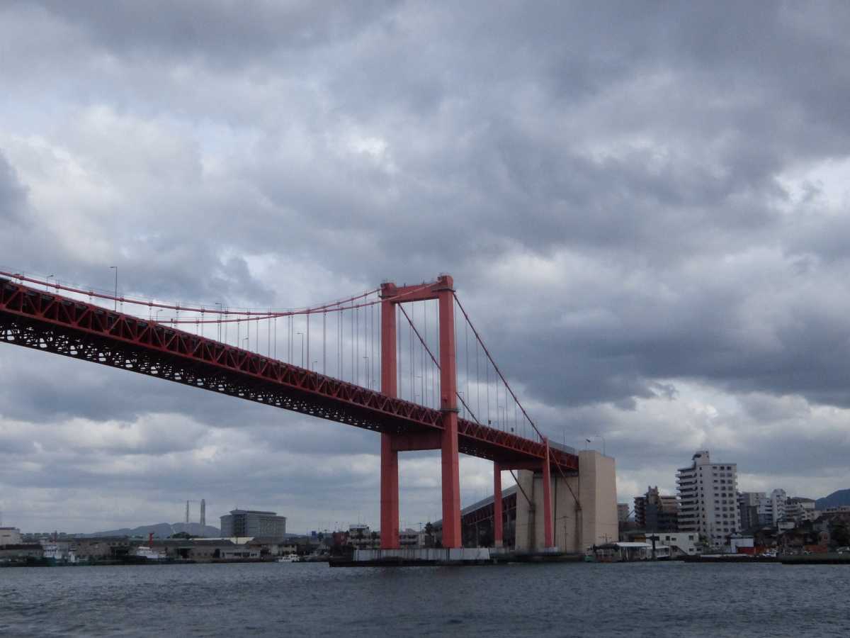 若戸渡船より洞海湾(若戸大橋、ニッスイ戸畑ビル)