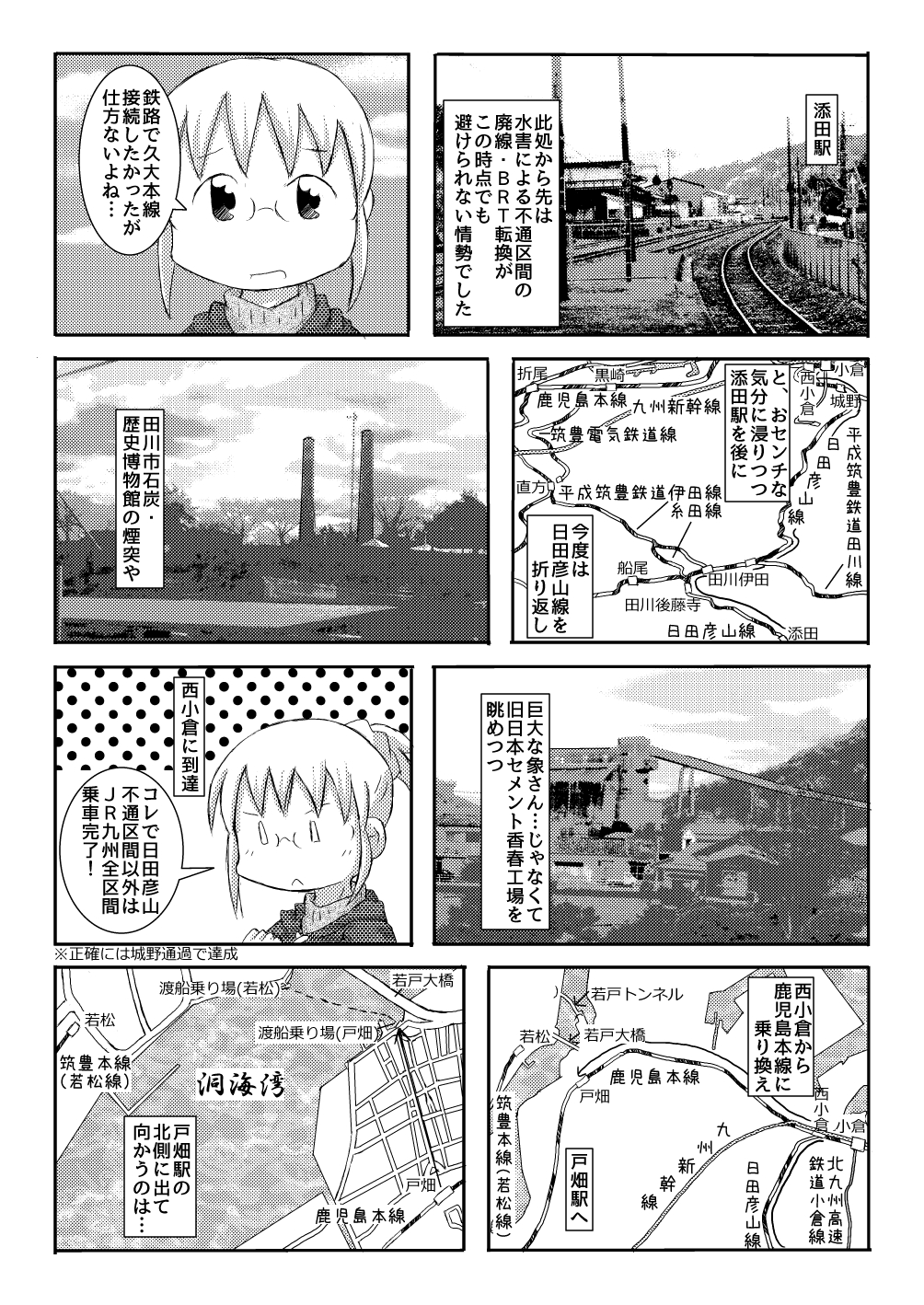 日田彦山線残存区間である添田まで進んで折り返し、城野まで到達で日田彦山線も完乗。その後は戸畑まで移動して若戸渡船で若戸大橋を下から見つつ洞海湾横断。