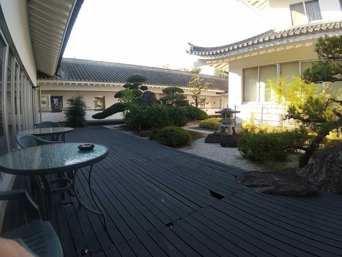 お風呂はこの一階、中庭の奥の回廊沿いにあります。日帰り入浴は500円、シャンプー、コンディショナー、ボディソープに小さいながらもサウナまである環境を考えれば500円は安いかと。