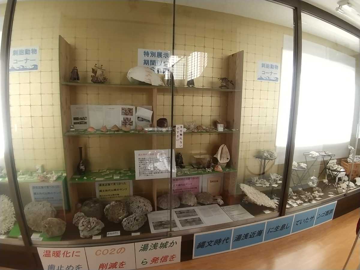 また4階は展示スペースになっていて、現在は日本財団のプロジェクトによる海洋生物の標本化石等が展示されております(以前は当地を収めた湯浅氏の資料が展示されていたそうです)。