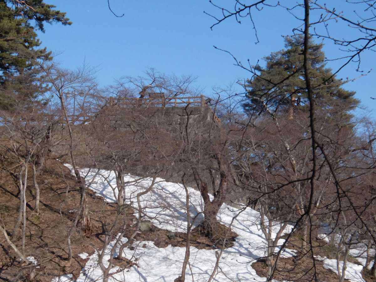 そんなこんなでぐるっと掘りを迂回して北側の鷹丘橋から天守台へ登ります。