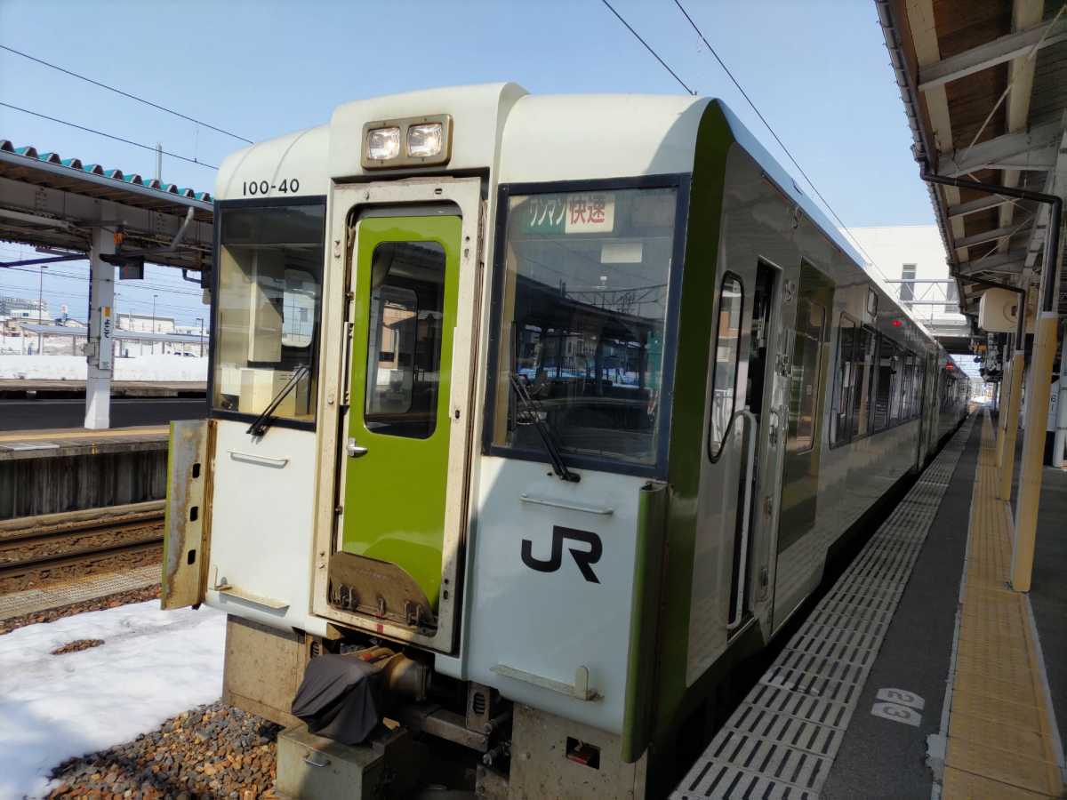 最後は北上線で北上駅へ。乗車前から融雪で10分前後の遅延が確定していますが、乗り継ぎには支障なしと言う事で乗車。