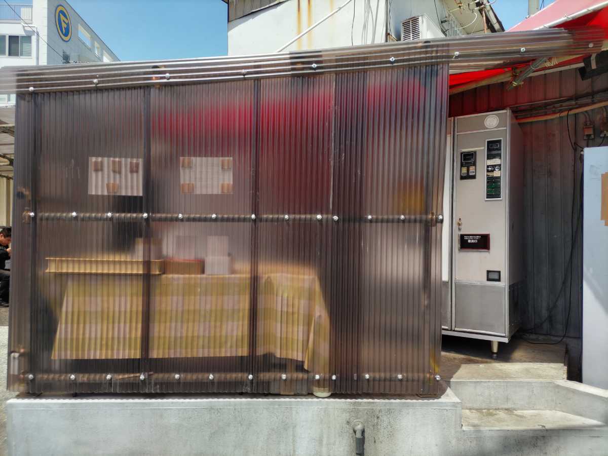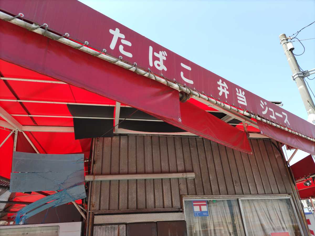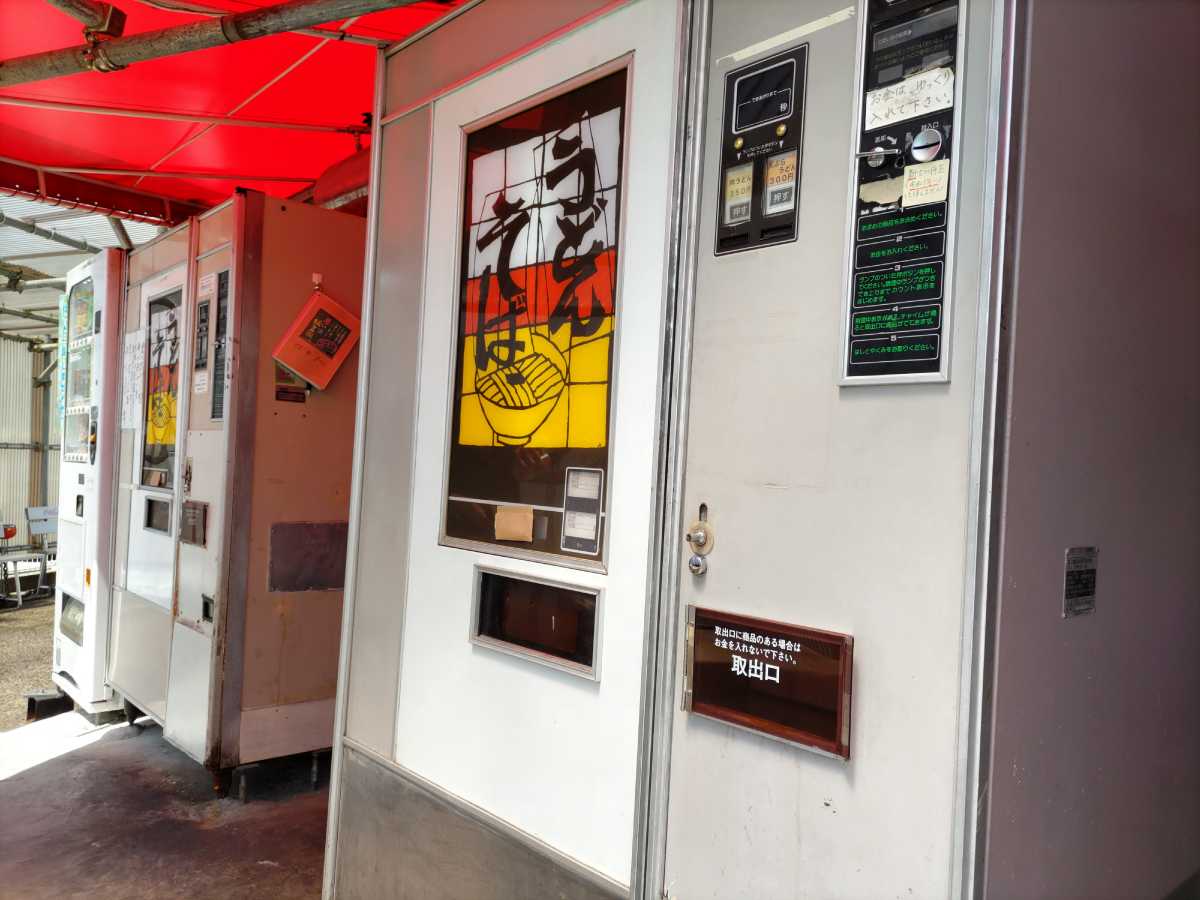 今回の旅、最後の麺類自販機店「五洋売店」へ到着します。時間帯が昼時だったので結構なお客さんが来てました。