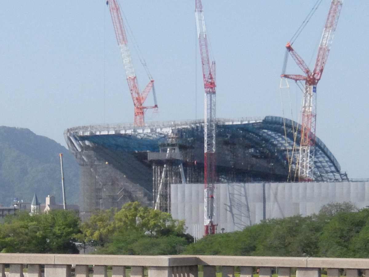 反対側に建築中のサッカーの新スタジアムを写真に収め、途中で荷物をピックアップして広島を後に。道中、電車遅延に巻き込まれ這う這うの体で何とか宿に辿り着いたのが19時過ぎ、1時間ほど突っ伏してたのですが、体力が戻ってきたので晩御飯に。