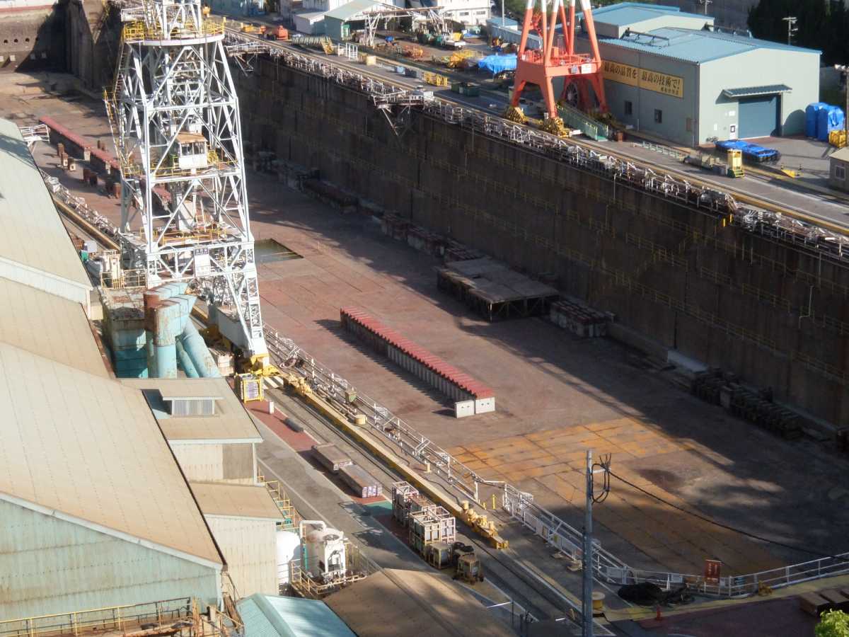 ドックは空と大型のタンカーっぽい船が建造中でした。