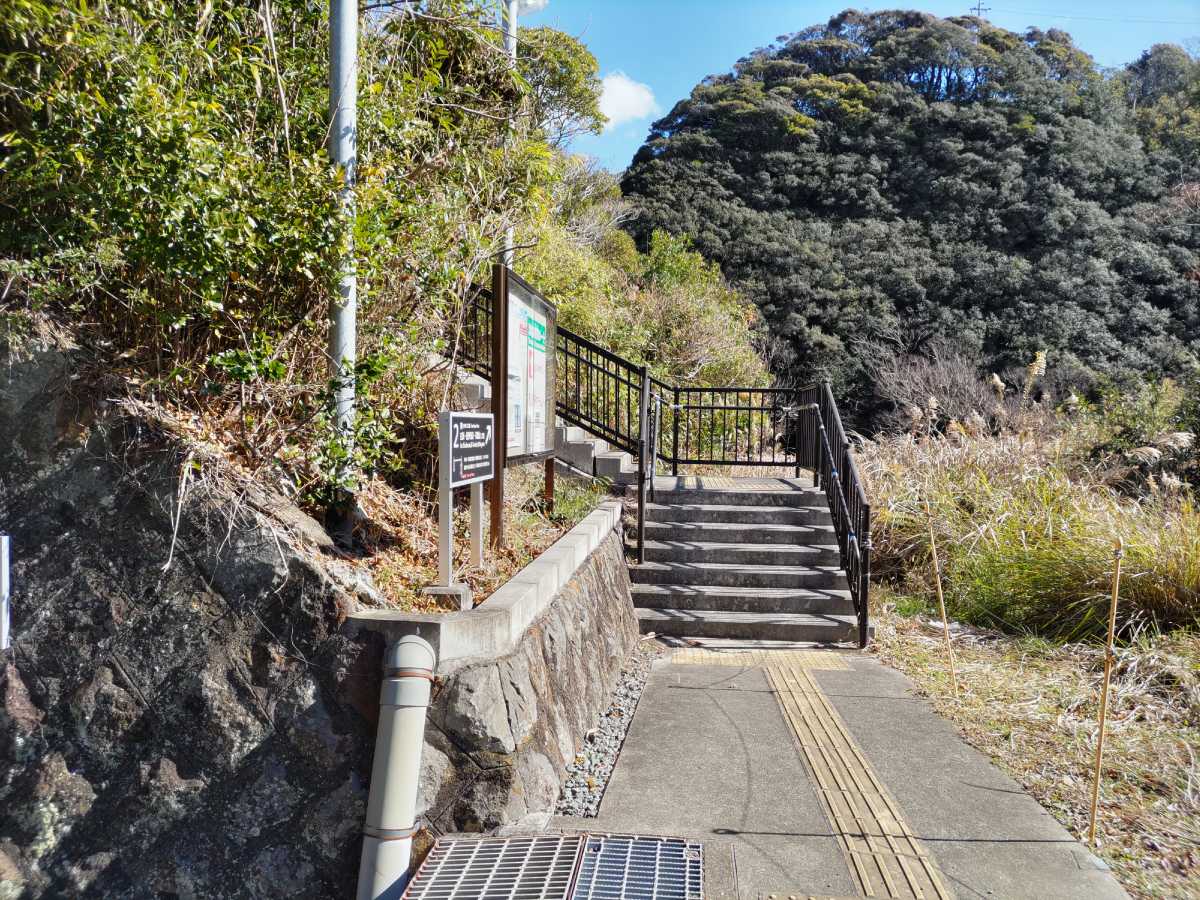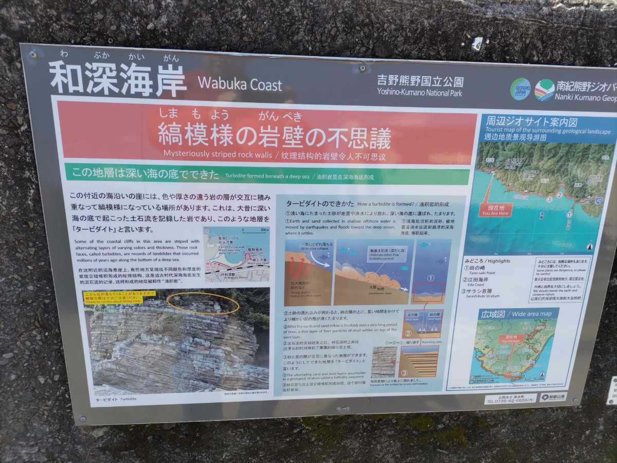 尚、先程の階段を上らずにそのまま海に抜けると、南紀熊野ジオパークの一角である