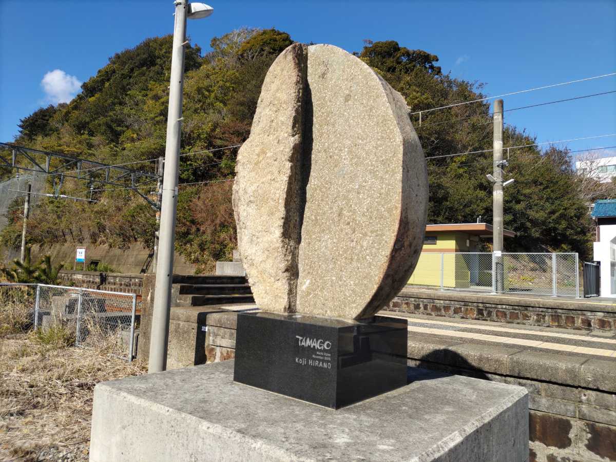 その嘗て3番線だった所には石で出来た「たまご」が