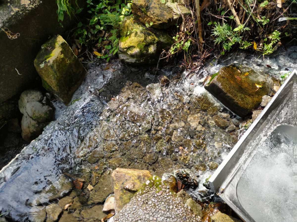 一応正座すれば腰の下までは浸かります。足を放り出して尻だけと言うのも有り。上半身は打たせ湯状態位かなぁ…。と、言うか、そもそも行為とすれば、田舎とは言え普通に交通量の多い道端で半裸になってると言う感じなので、どう見ても事案ですよね、コレw かなり勇気要るわ